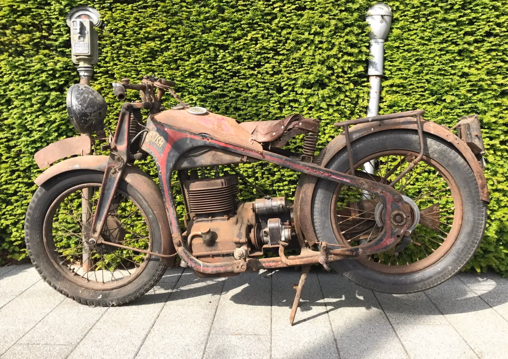 Top model of the French Dresch brand, model 500 Monobloc. This is a 500cc in line with shaft drive and pressed frame. Rarely come these beautiful motorcycles for sale.