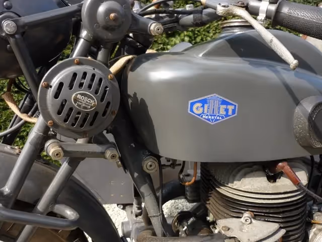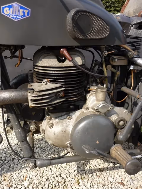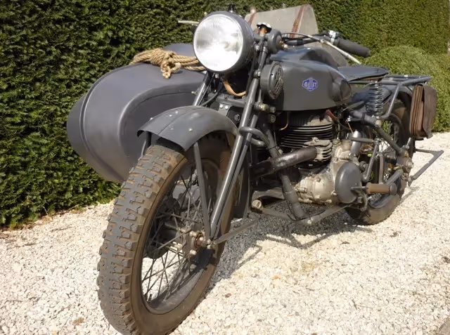 750cc 2 stroke with driven sidecar.German war motorcycle of Belgian make.Fully restored very rare Belgian Gillet ordered by the French army in 1939 for the preparations of the upcoming war. In 1939 France tests several army motorcycles in Vincennes because Gnome et Rhone (model AX800) can not follow the production. The French army was heavily impressed by the Belgian Gillet for this event was equipped with a Belgian sidecar because the original Belgian army sidecar was classified as secret and therefore not allowed to cross the borders. Gillet was the only motorcycle that could easily take slopes of 50%. This order consisted of 1500 Gillet motorcycles but with the French sidecar Bernadet 'Dragon Porté' that would be delivered from 1 May 1940. The first 50 motorcycles that had to be delivered on 1 May could not be finished because Germany did not want to deliver the electrical Bosch installation, because they had to know for whom these motorcycles were. For France they did not want to deliver because they were already at war. So the delivery was delayed 10 days. On May 10, the Germans invaded Belgium and the engines were never delivered to France but were seized by the Germans and there was an order to continue production because Germany could use these engines. The production was delayed as much as possible by the Belgian forced labor so that ultimately only 745 built and delivered to the German army (see the Waffenambt stamp behind the frame number). Of this Gillet there are about 10 complete motorcycles known but this is probably the only German version that exists with a sidecar. Through this link you can see the bike driving: http://www.youtube.com/watch?v=SPpsPCYynIE&feature=youtube_gdata