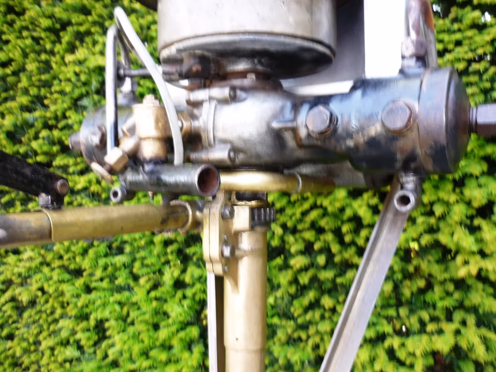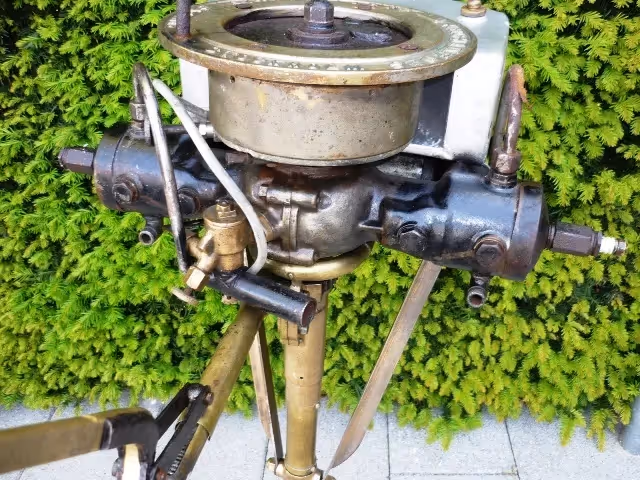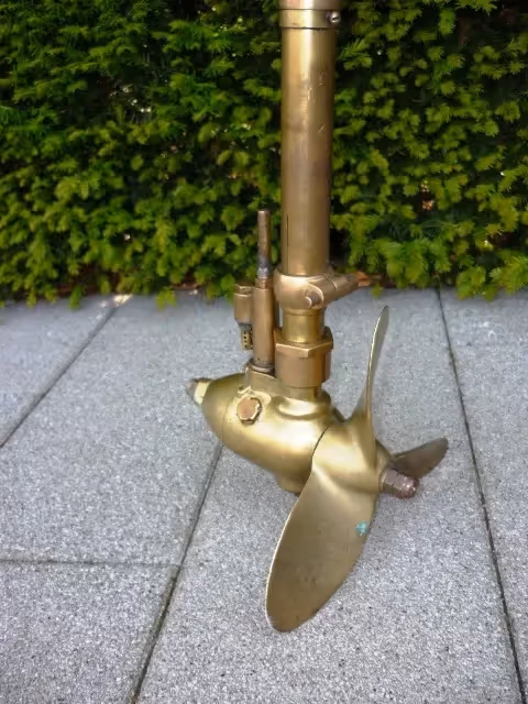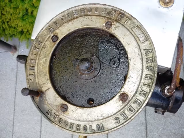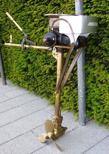 Swedish outboard engine with water cooled boxer engine.Almost completely in bronze, very nice decoration item.
