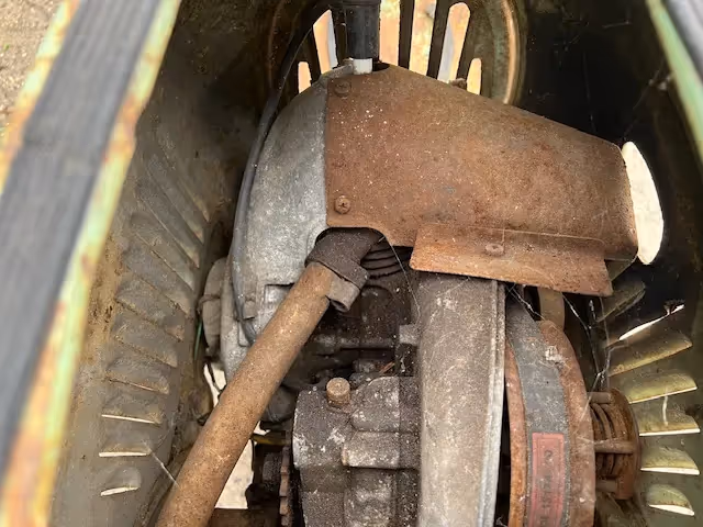 German DKW scooter model Hobby. This is a 74cc in original unrestored condition. Starting this scooter is not done with a kick starter but by hand like a lawnmower. First German automatic motorcycle scooter (Variomatic). Advertised as "duo passenger" and "don't shift, just ride". Powerful engine with fully automatic continuously variable gearbox (system Uher) Manufacturer: Auto Union GmbH in Ingolstadt.