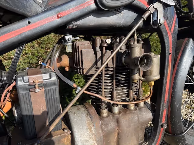 French Dresch monobloc Supersport 500cc 2 cylinder OHV from 1930 with cardan drive and pressed frame. Very rare OHV version of the common side valve monobloc. Of this model there are only a few known and these normally never come for sale. Motorcycle is completely original and is technically overhauled, starts and runs well but needs further tuning and running in.