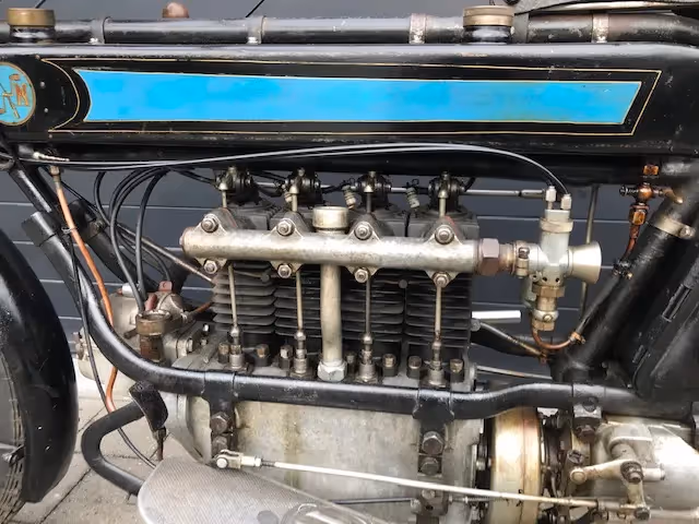 F.N. started making 4-cylinder cardan-powered motorcycles in 1905. The number of cc's started with 362cc and increased to 700cc in 1920. In 1921 a new model with 750cc head and side valve engine was introduced. At the end of 1923 this model was replaced by the M50 (with chain drive) which was much larger and more cumbersome for sidecar use.