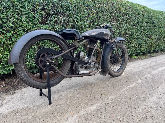 Belgian Fn model M67 D of 1930. This is a 500cc OHV. Motorcycle was disassembled and is now put together separately to show how complete it is. On the picture there is no steering wheel but I have already found one, soon pictures of it. Furthermore, only some small parts and the brackets of the fenders are missing. Nice basis for restoration.