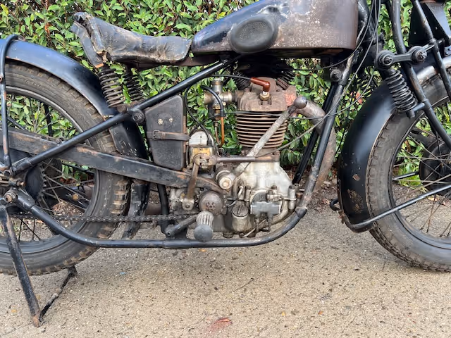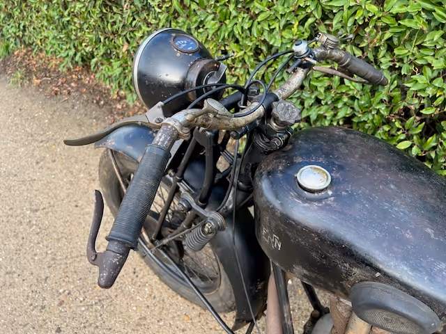 Belgian FN model M67D. This is a 1930's 500cc OHV in original unrestored condition. Magneto was overhauled a few years ago (invoice is there) and then they started the bike to sell. So with a little maintenance and overhaul it will be back on the road. Motorcycle has French papers.
