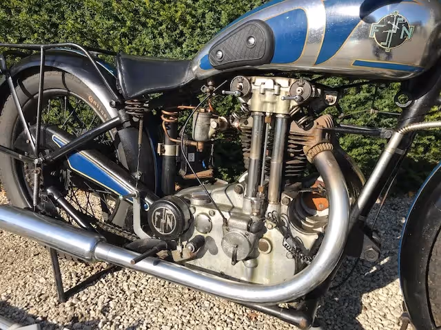 Early model of a very nice Belgian FN model M86 Supersport. This is the top model of Fn in the 30s. A 500cc OHV sports model. This motorbike is in complete original condition with the early rare Bosch headlight with walzentacho. The exhausts are of the early type but the well known exhausts with big fishtails are there. Carburettor is a later model but the correct model is there. The generator has been disassembled but is also there. This bike starts and runs good but needs a good maintenance and check-up. Rarely you come across this model and certainly in such a nice original condition.
