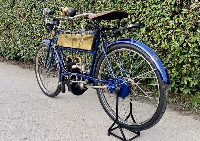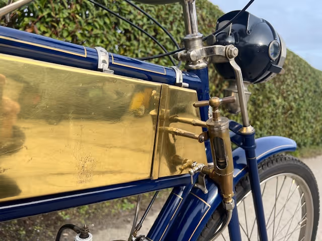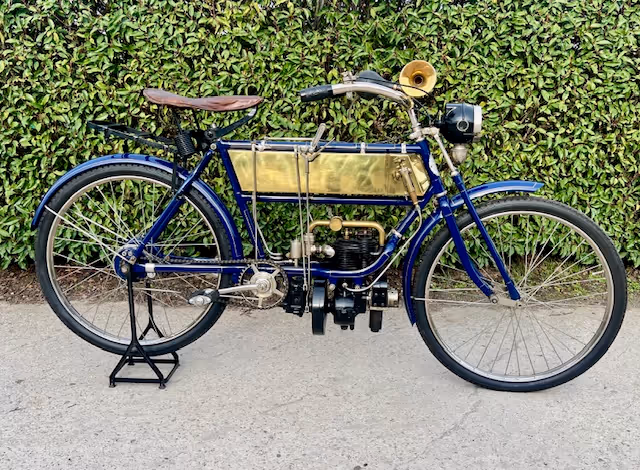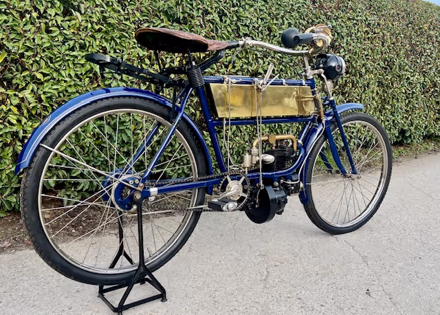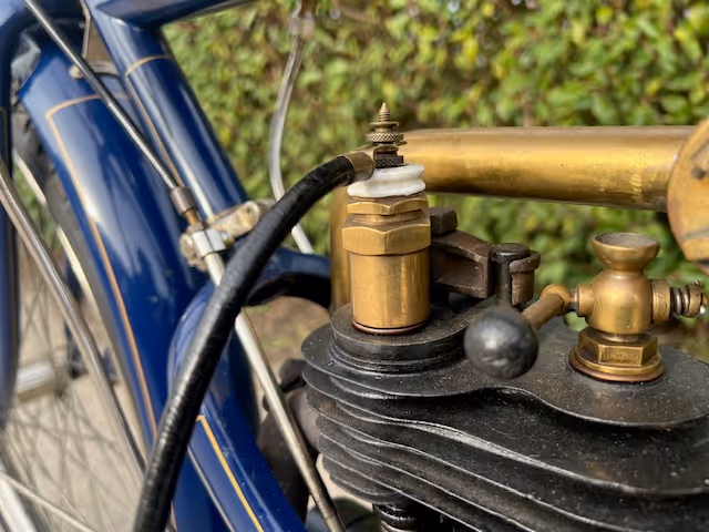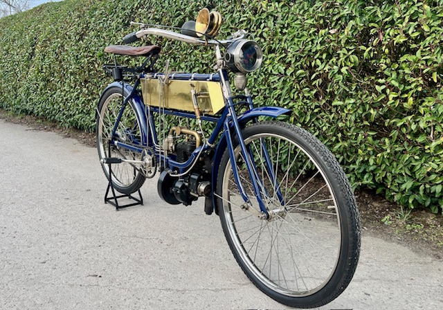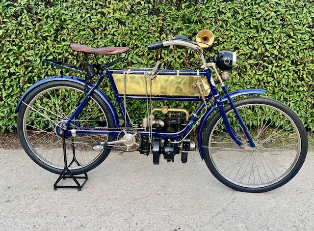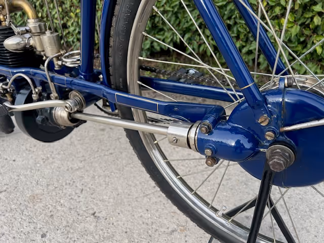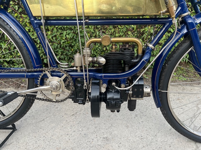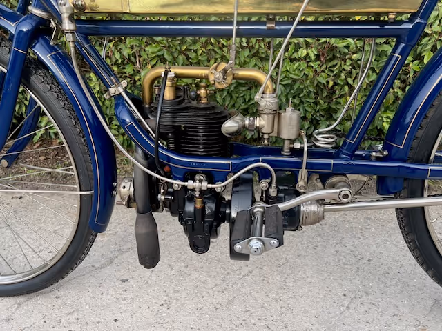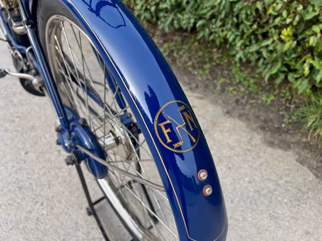 FN model 274. This is a 247cc from 1909, 2 speeds with cardan drive. Older restoration.