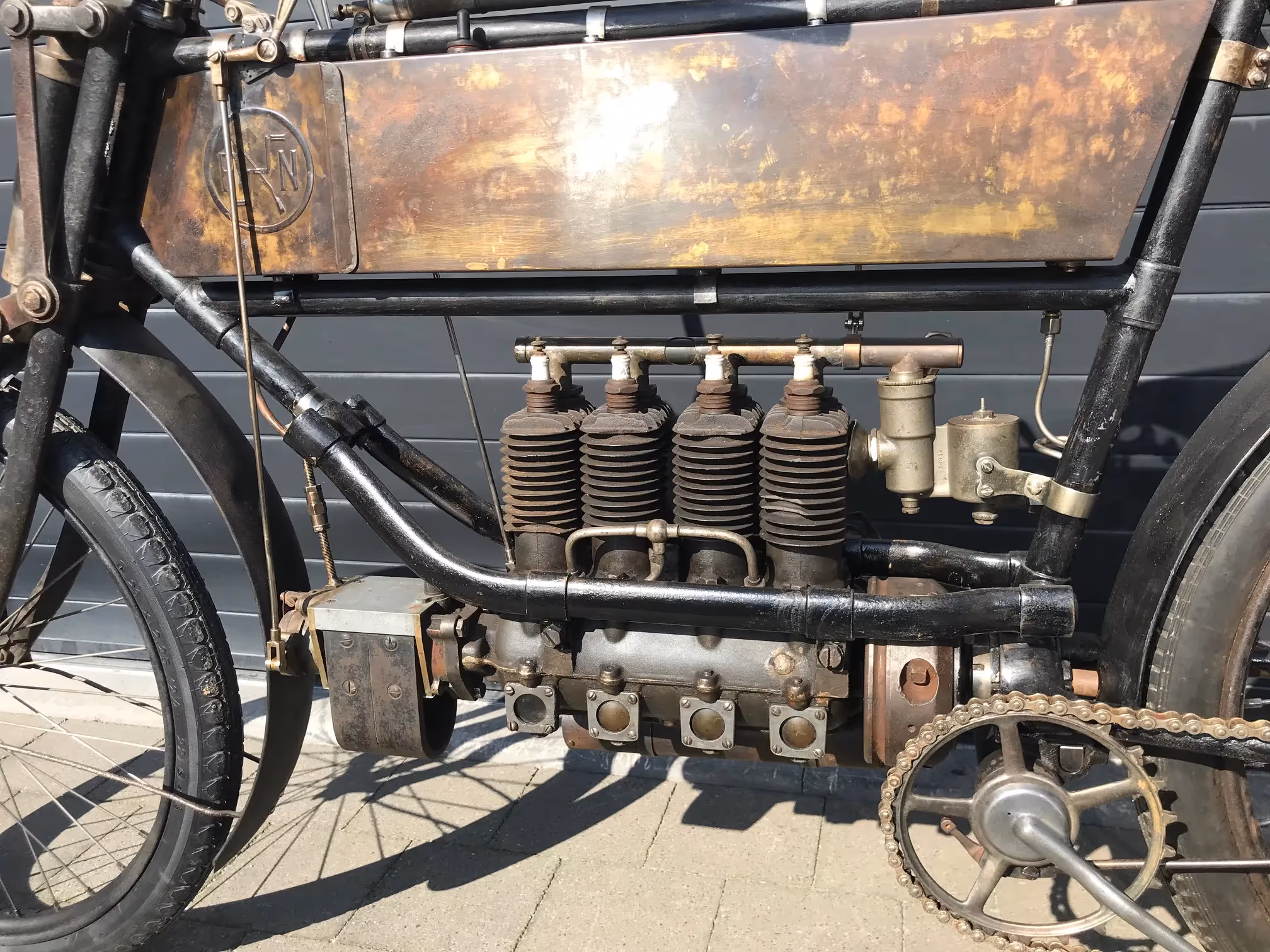 Belgian FN 4 cylinder of 1906. This is a 412cc in beautiful original condition with all FN stamps at the right places and original number plate.