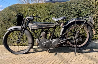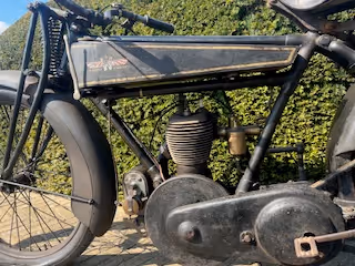 French Gnome & Rhone model B. This is a 500cc side valve with belt drive. Motorcycle is in nice original condition and is running.