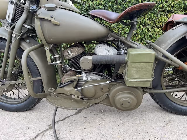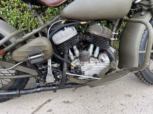 The Canadian Army ordered 10,000 Harley-Davidson's model WLC under the Canadian defense contract : C.D. LV1525. These were all made between Oct. 1942 and Feb. 1944. Only 8000 were delivered of which 3000 were for the home country and 5000 were for export to europe for the purpose of WWII. This is one such export model. This is a mock-up build to show what is there and what is missing. Engine and gearbox need complete overhaul and are not complete. Rolling chassis is in perfect condition (with many new parts). Missing parts of the chassis are the front wheel stand, cabling tree, brake, gas and front ignition cables and probably some more small parts.