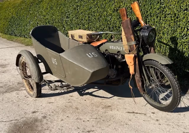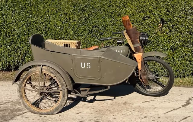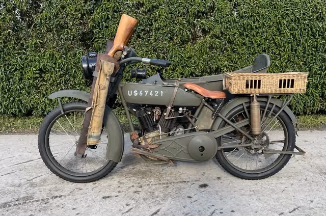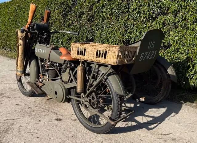 Beautiful basis for restoration of a Harley-Davidson 1000cc with sidecar which served in France and Belgium during the First World War.