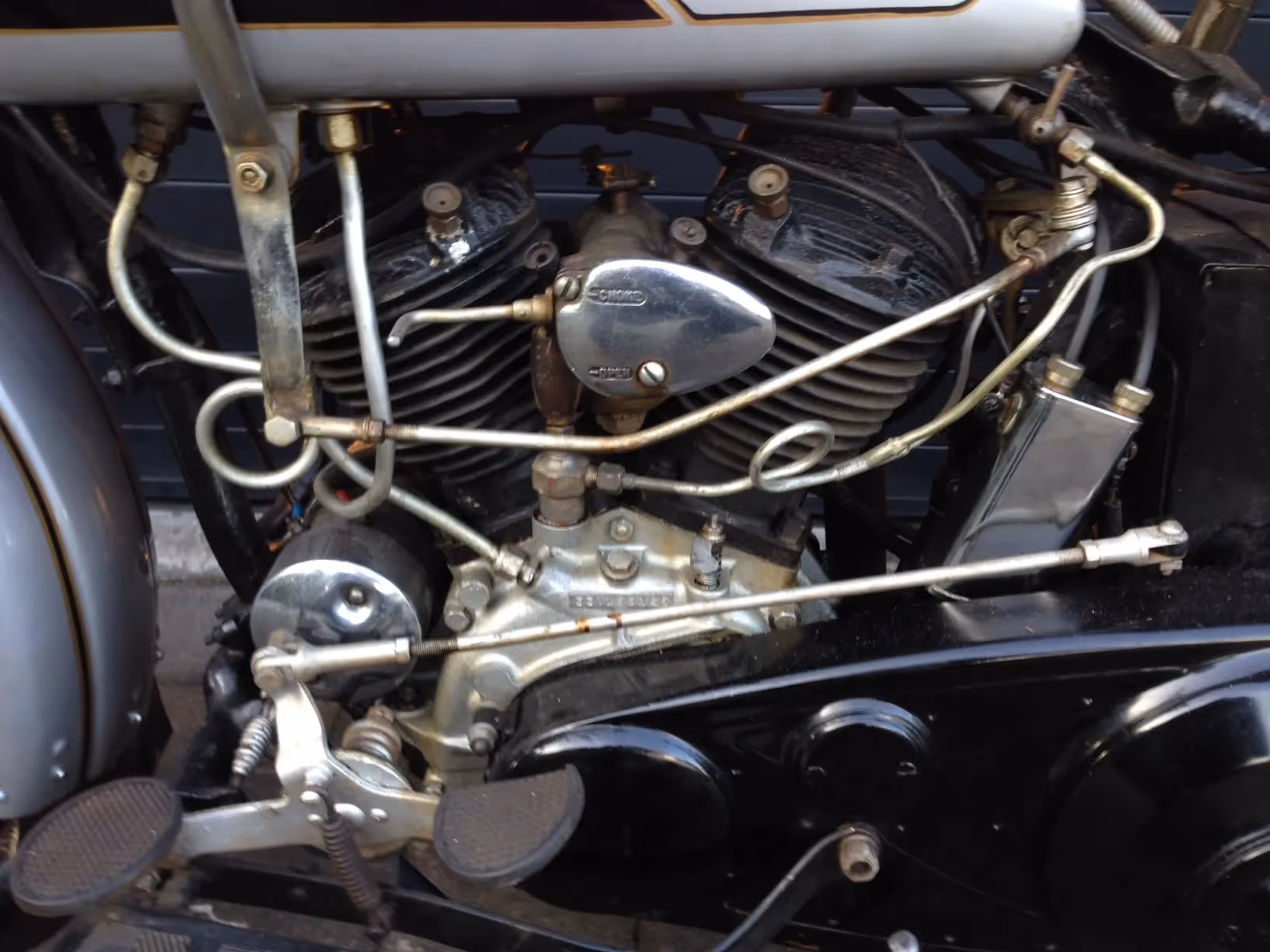 This model is rare because after the stock market crash in America, 1933 was the year with the lowest sales since 1910-11. Harley also stepped away from its standard olive-green color because Indian was now owned by paint manufacturer Du Pond and there were now many color variations available. These Harley's were now available in 5 different colour designs and in 1933 only with the art-deco bird motif on the tank. The VLE is a high compression engine with magnesium-aluminium pistons. The top speed is above 100miles/h (160km/h)