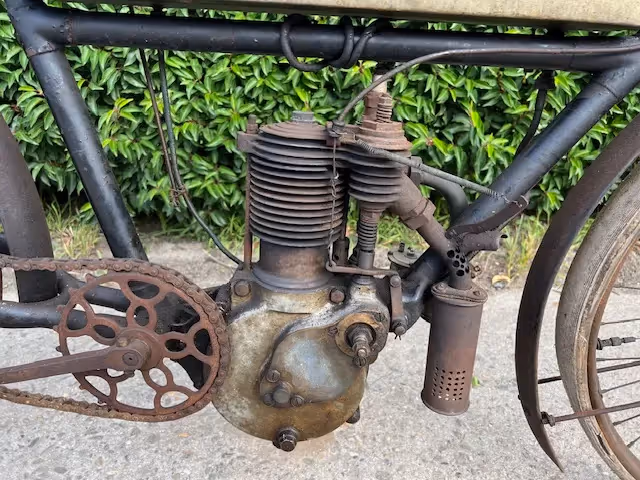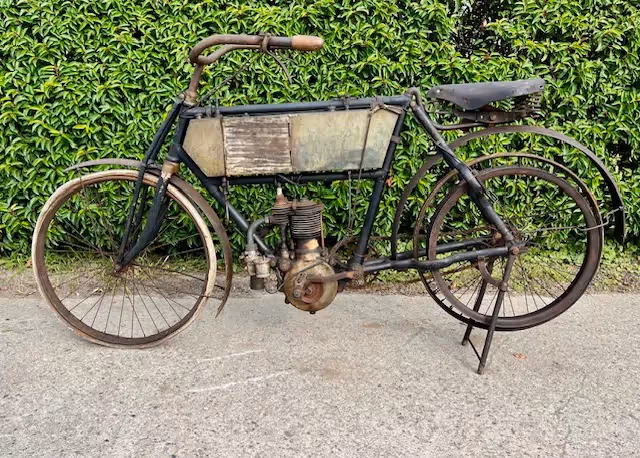 The French brand La Francaise Diamant made motorcycles with Zedel or Werner engines in the early 1900s. This is a 1903 model with Werner engine. Motorcycle has original racing options like the reinforced front fork, extended handlebars and racing position of the saddle. This is the only known 1903 LFD motorcycle known to exist.