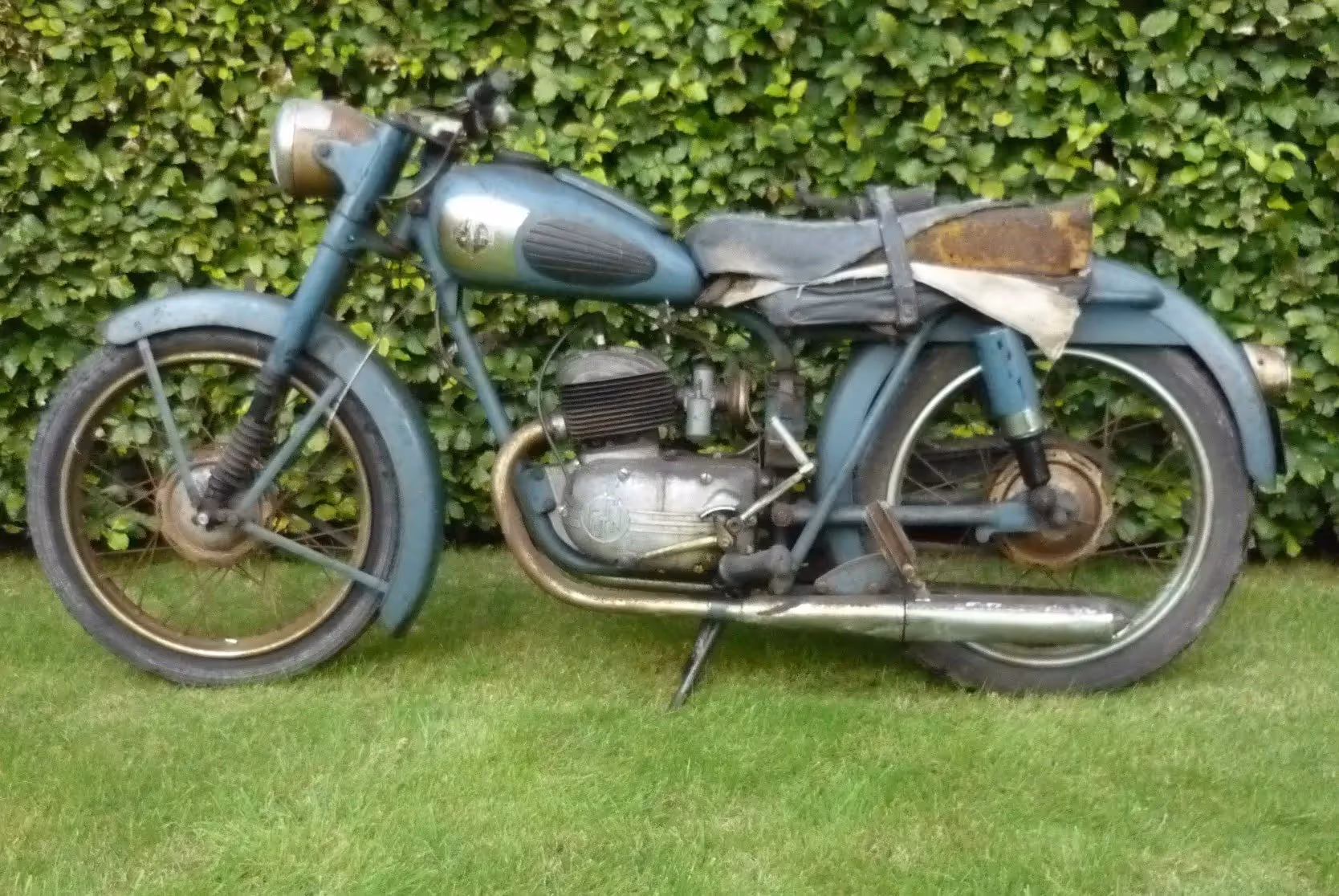 Beautiful unrestored and completely original FN model M22. This is a 175cc from 1953. In 1953 FN comes out with a new 175cc with an engine on the Küchen principle. This is an engine with double piston and 1 combustion chamber. This model was made until 1961. Engine has compression and gearboxes. Nice base to start up again.