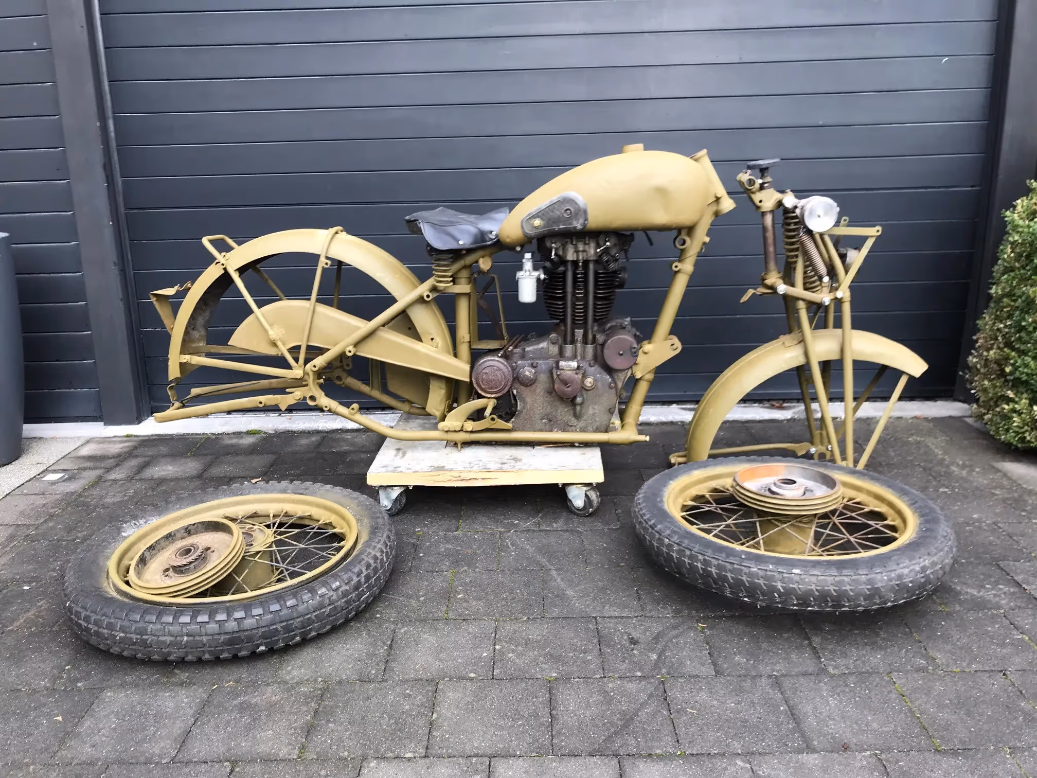 Very rare Belgian FN model M86 600cc OHV with hairpin springs delivered to the Belgian army. Of this model there are only about 30 delivered to the Belgian army. So far there are only 3 known motorcycles that still exist. Everything is different on this army motorcycle than the well known civilian sports version. Frame is different, front fork is wider to use the hubs of the FN 1000cc and both fuel tank and material box and many small parts are different from the civilian model.