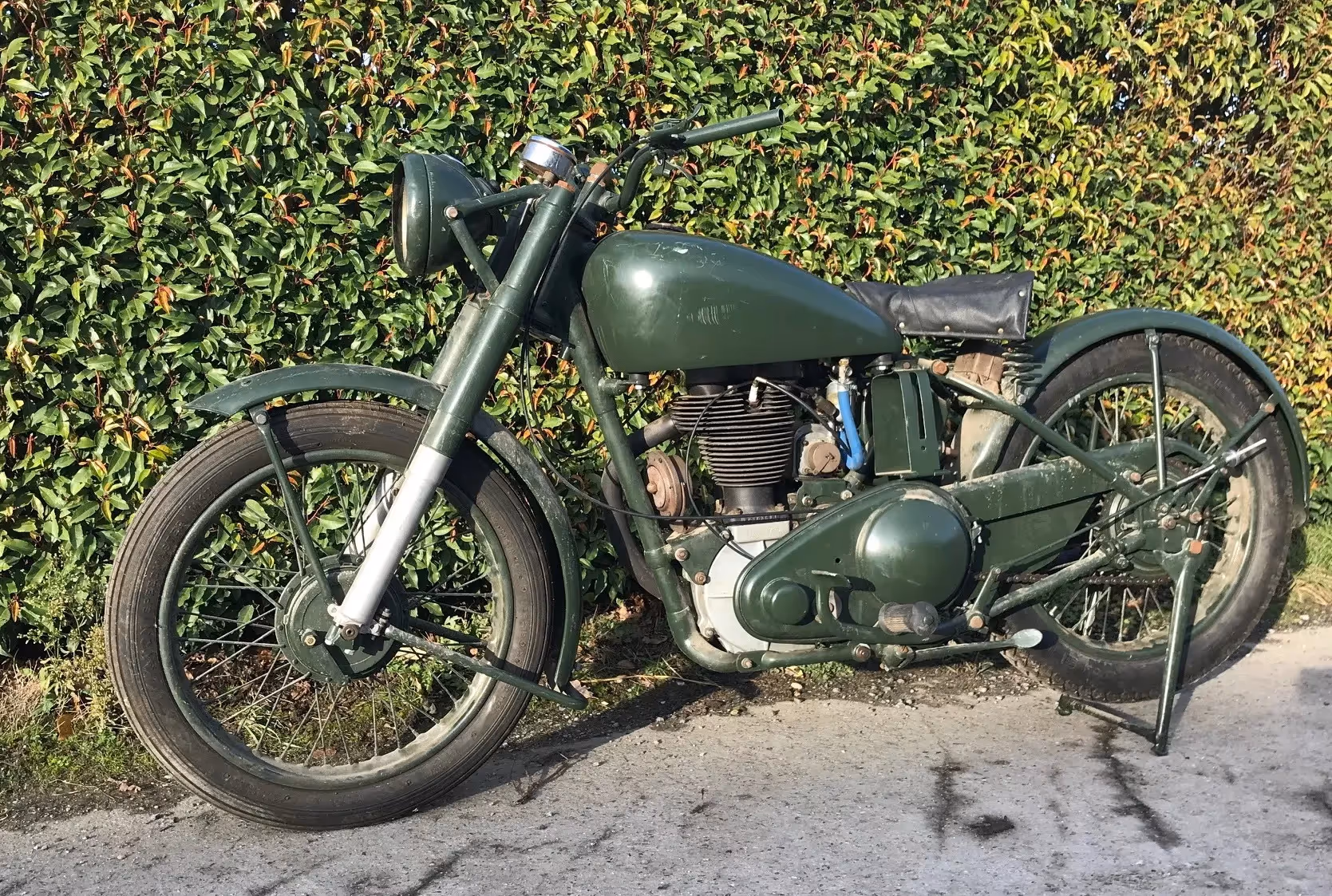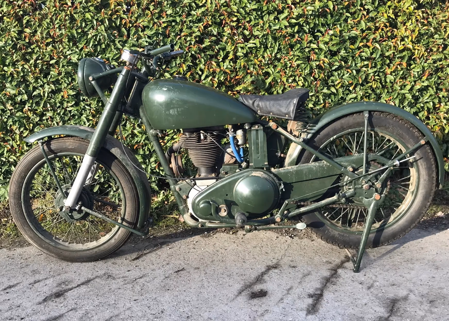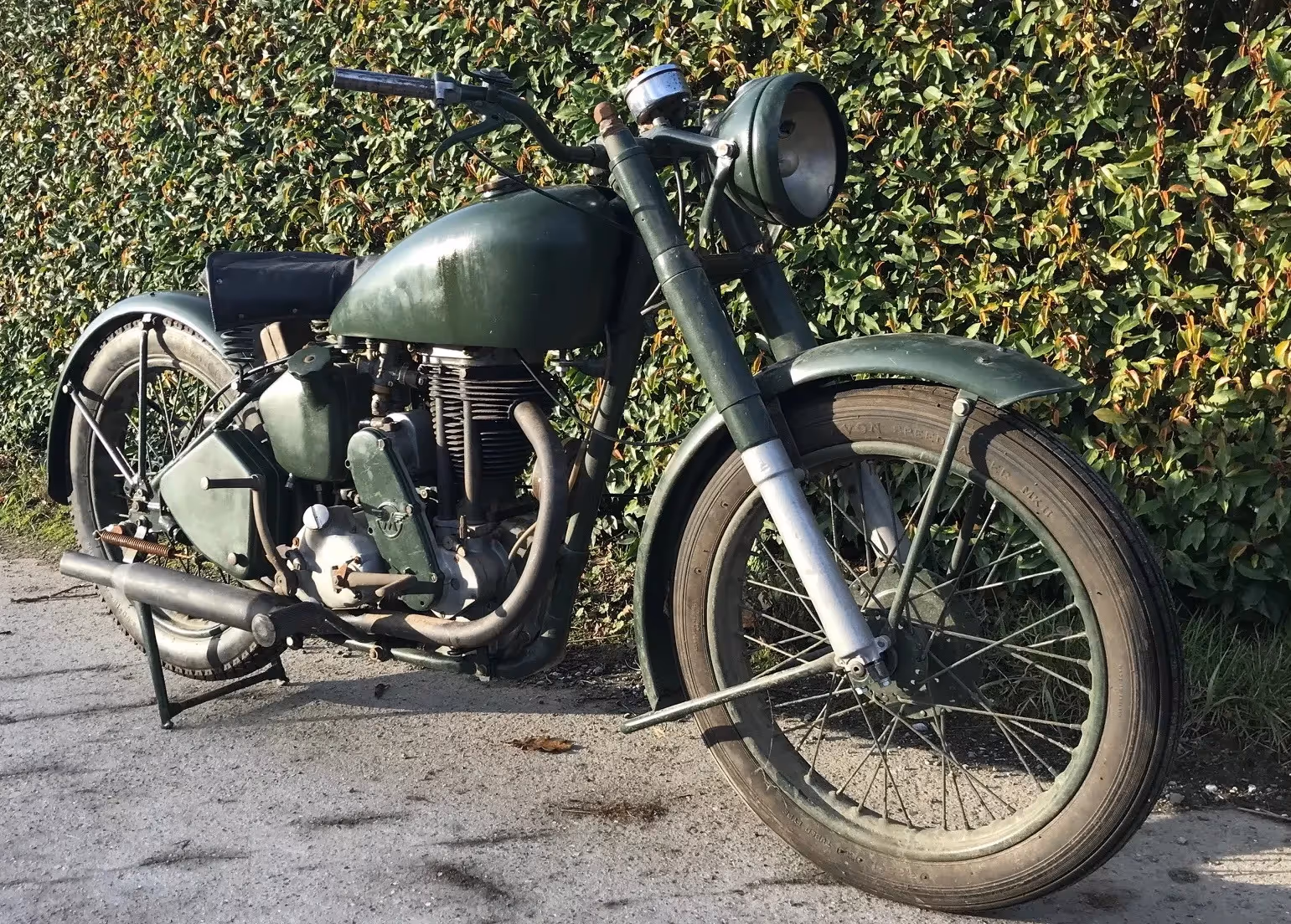 English army Matchless model G3L of 1941. This is a 350cc OHV which experienced the war. This motorcycle is fully restored but never finished. After a few moves and about 10 years in the garage recovered.