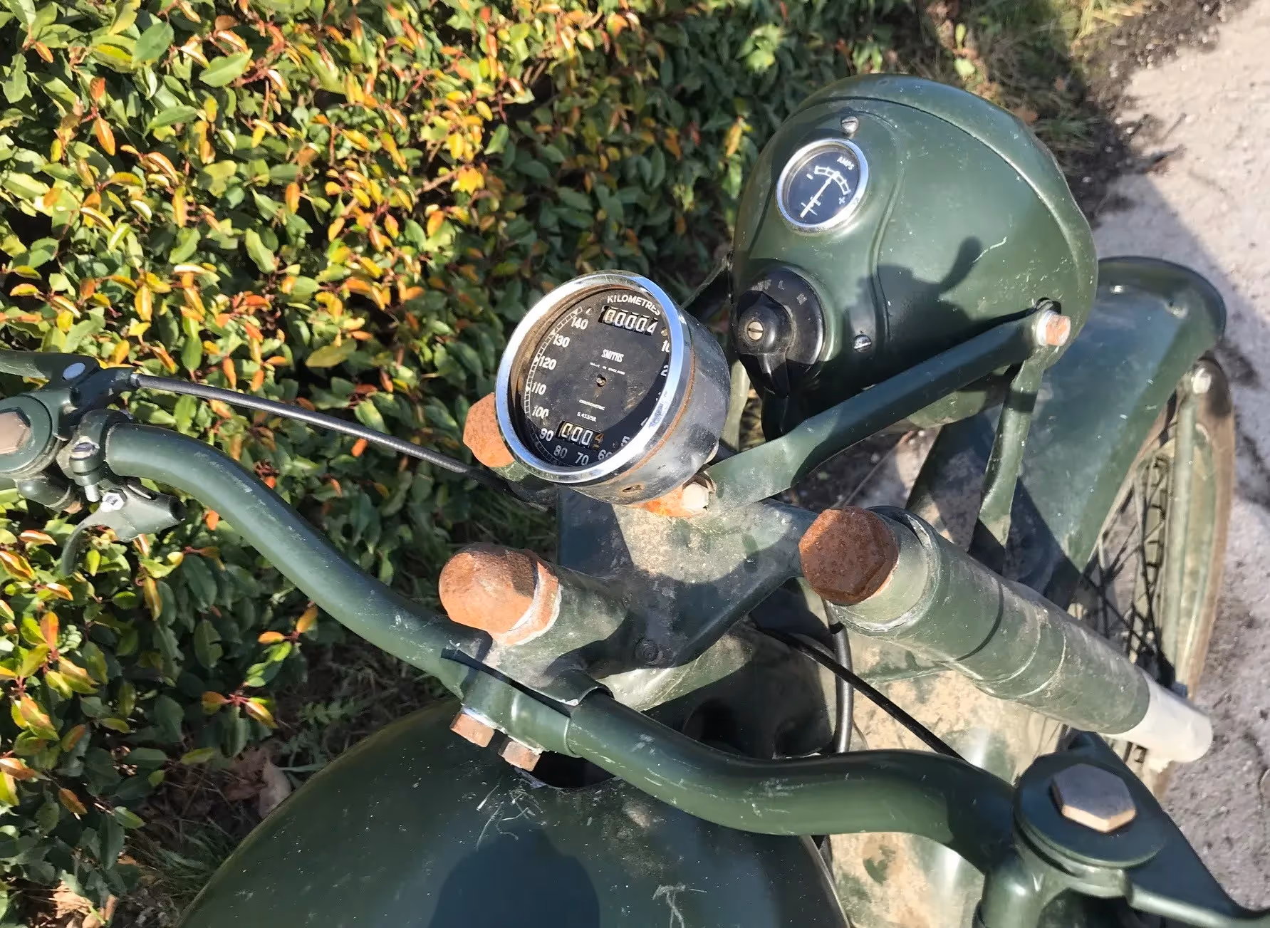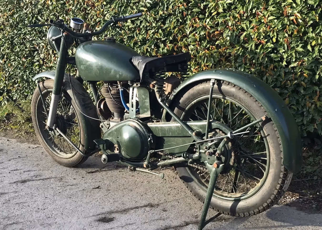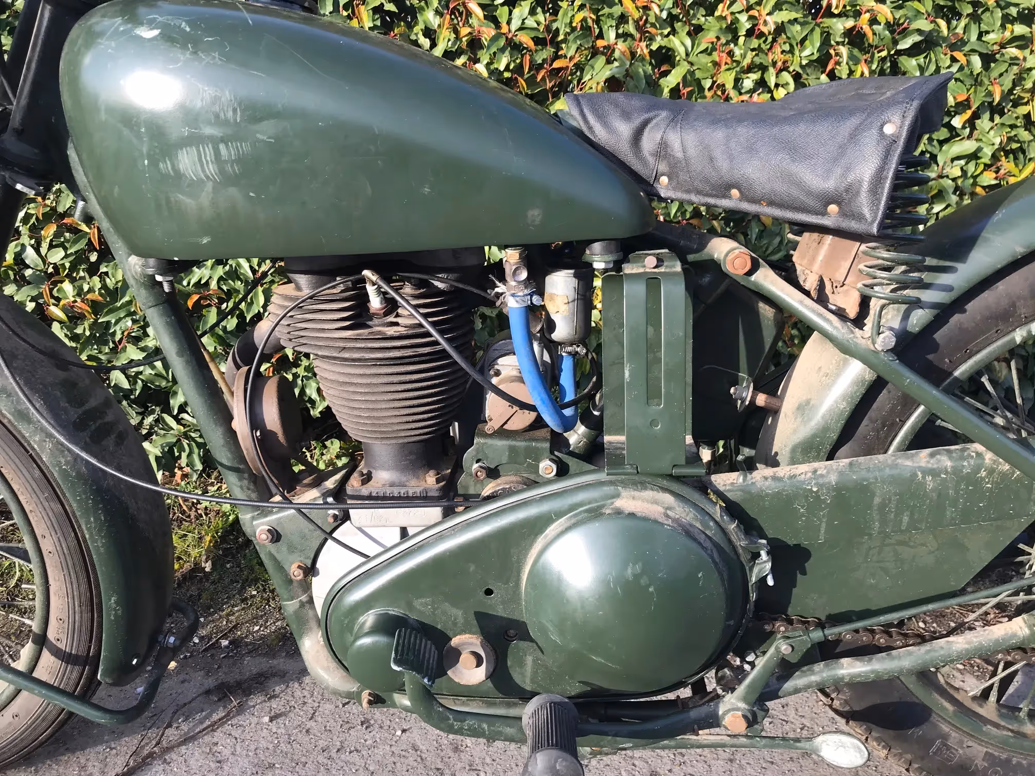 English army Matchless model G3L of 1941. This is a 350cc OHV which experienced the war. This motorcycle is fully restored but never finished. After a few moves and about 10 years in the garage recovered.