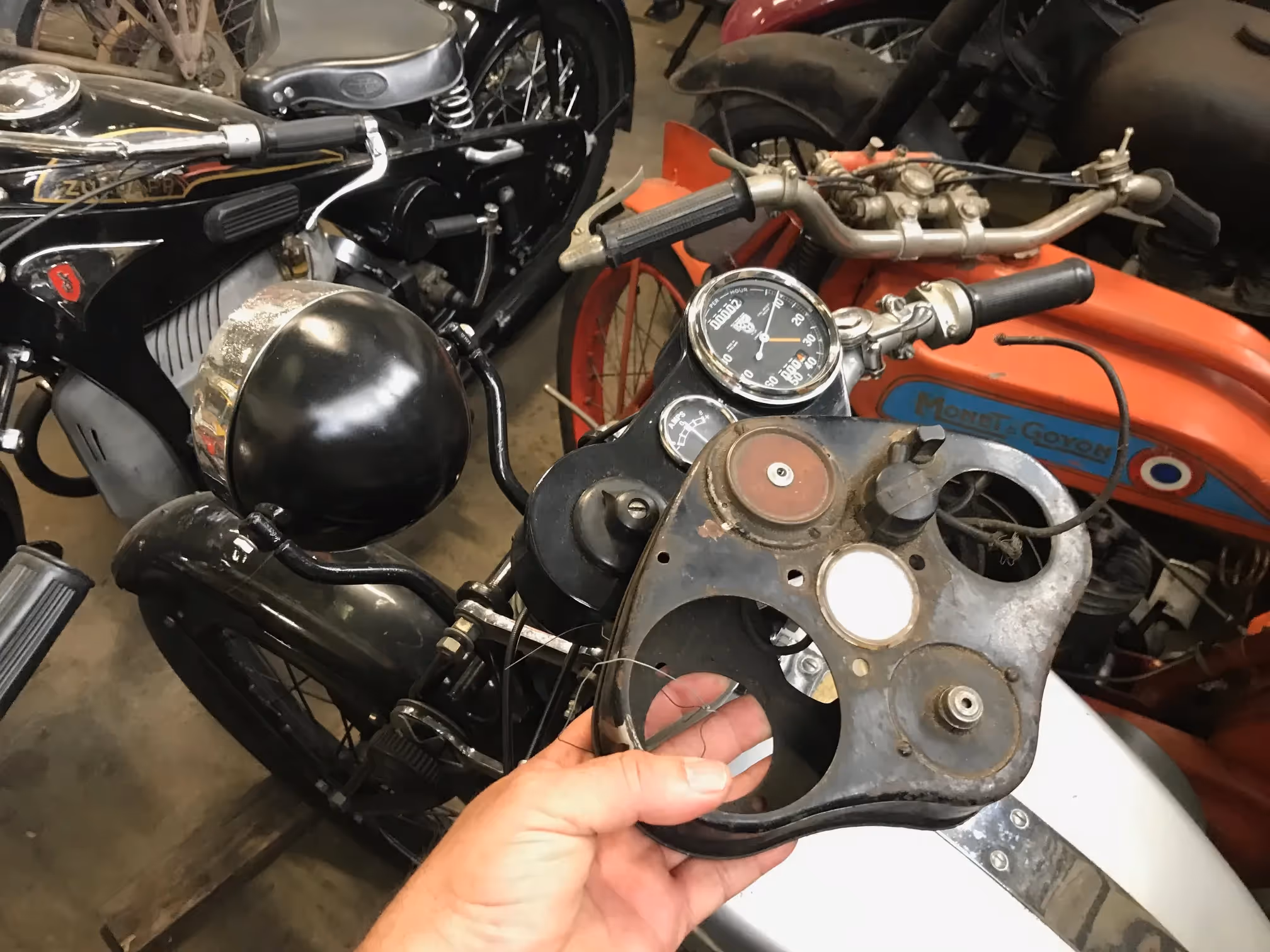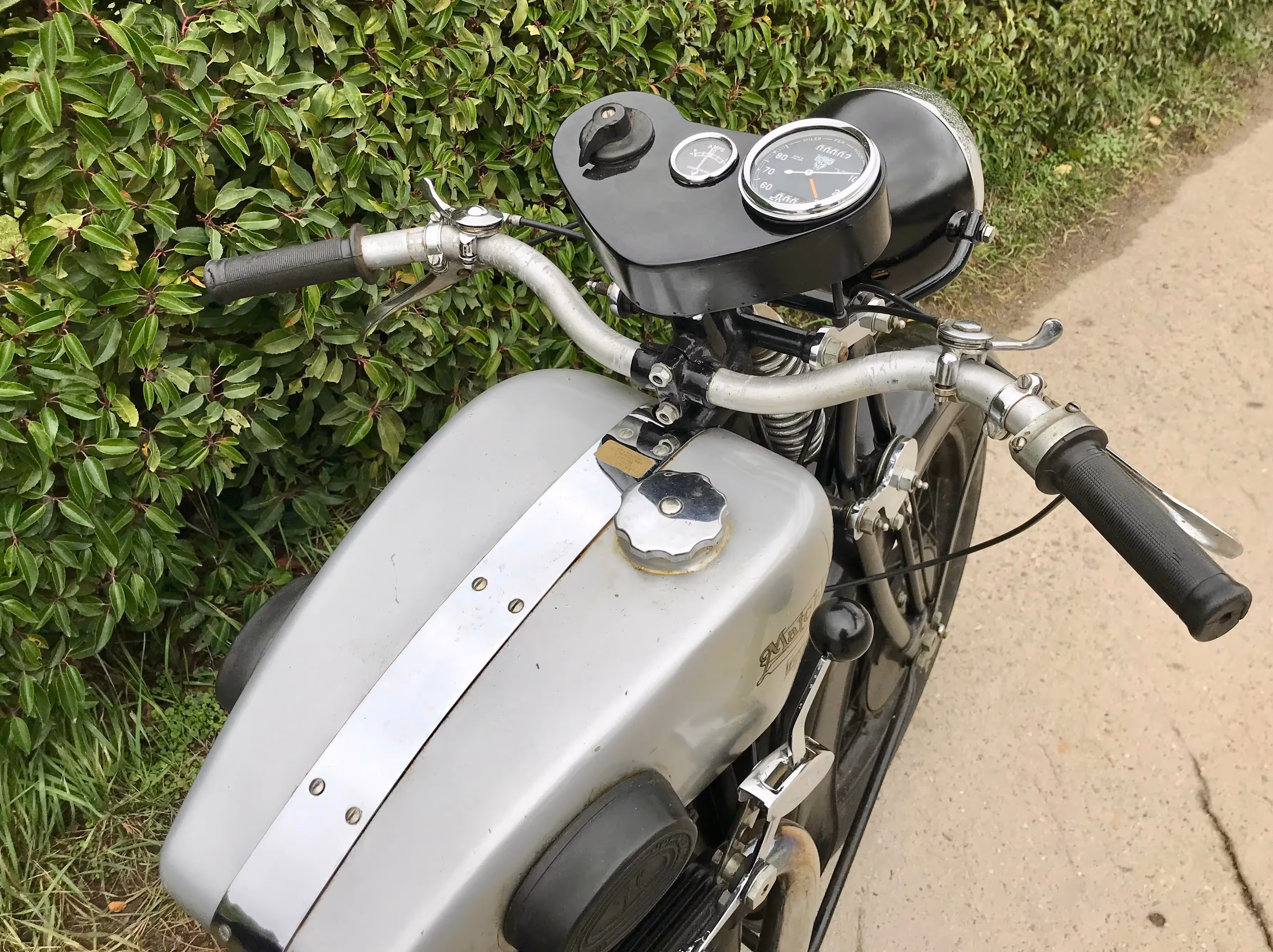 This is the first model Silver Arrow type A1 De Luxe with pivot throttle, electric lights and instrument panel. Motorbike starts and rides well. Now complete with original dashbord, not yet mounted.