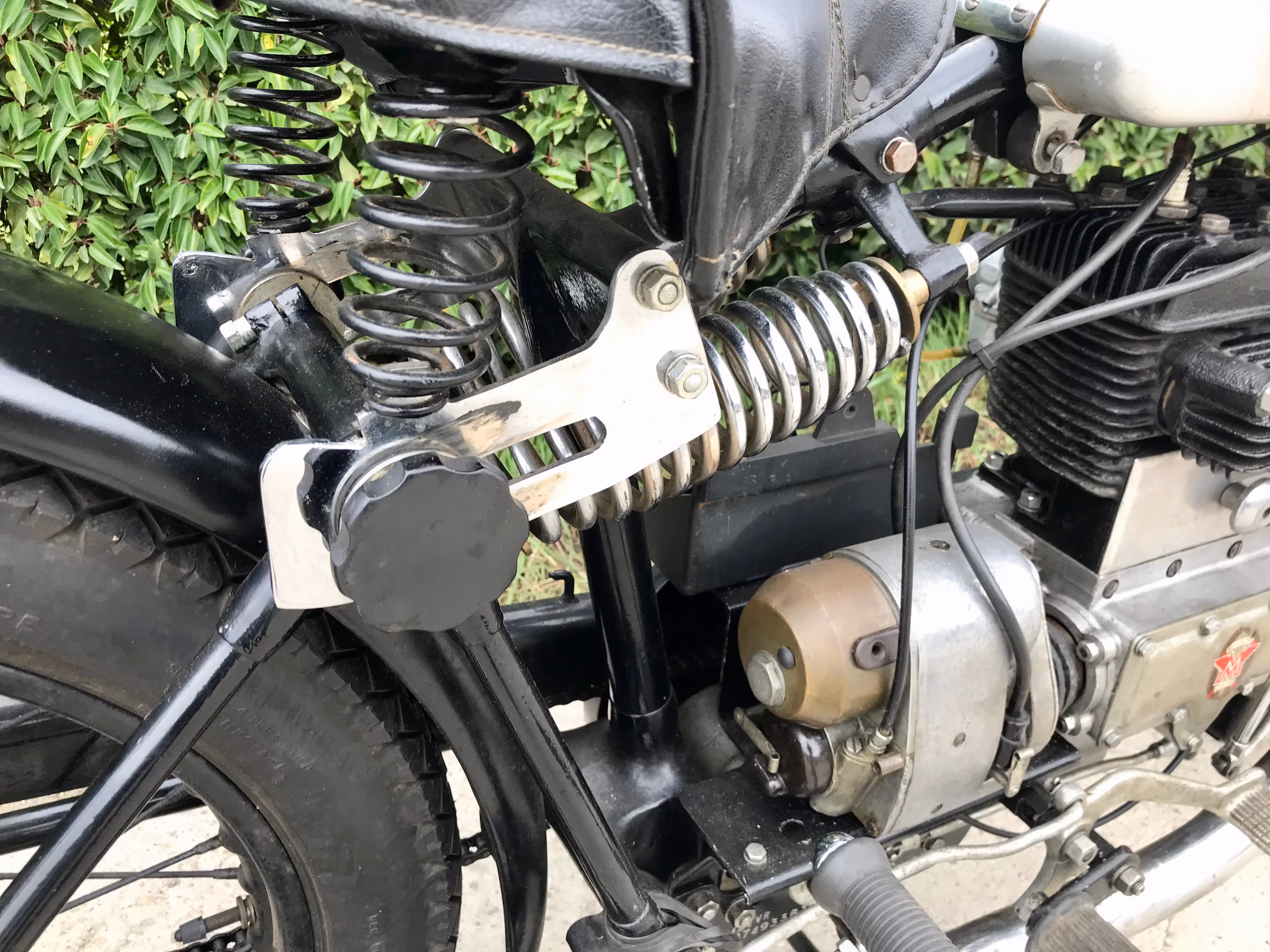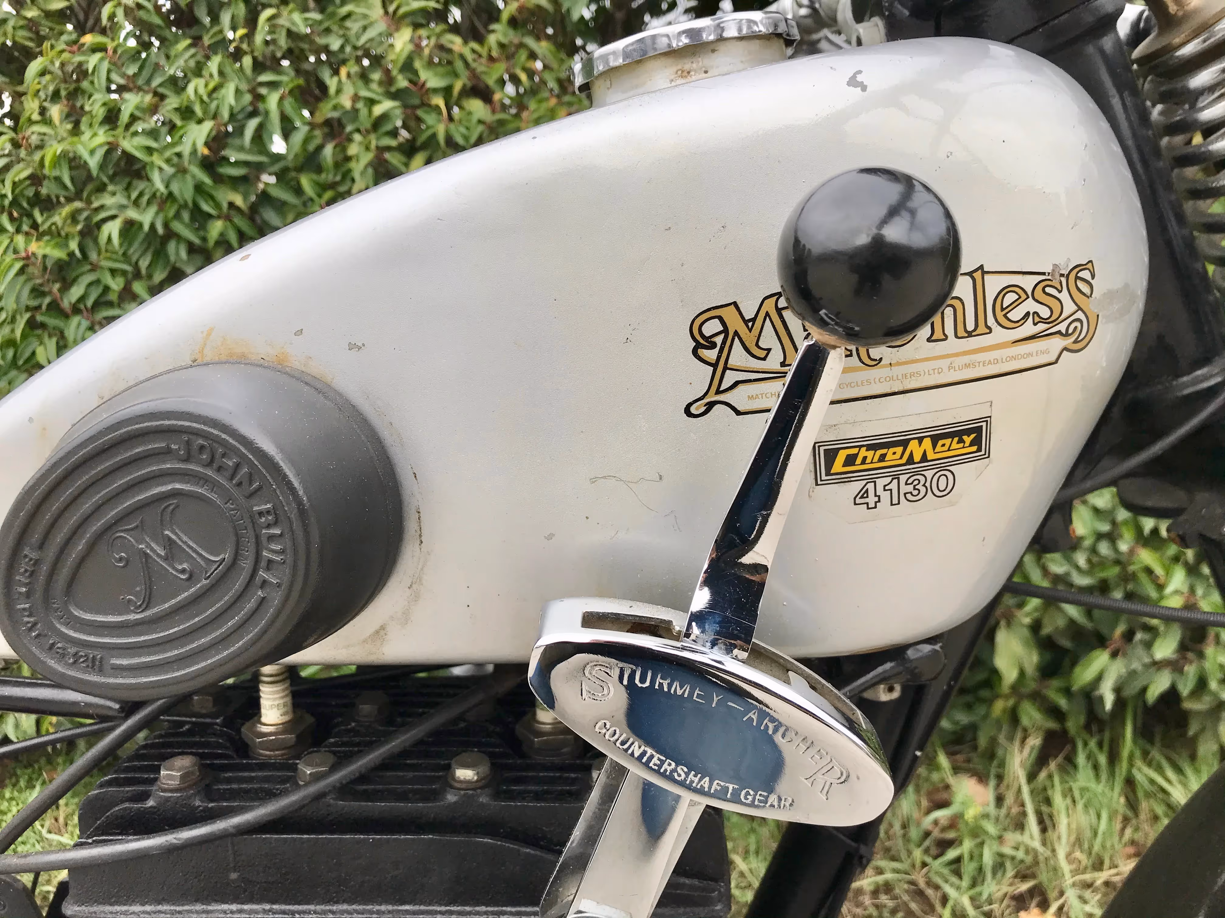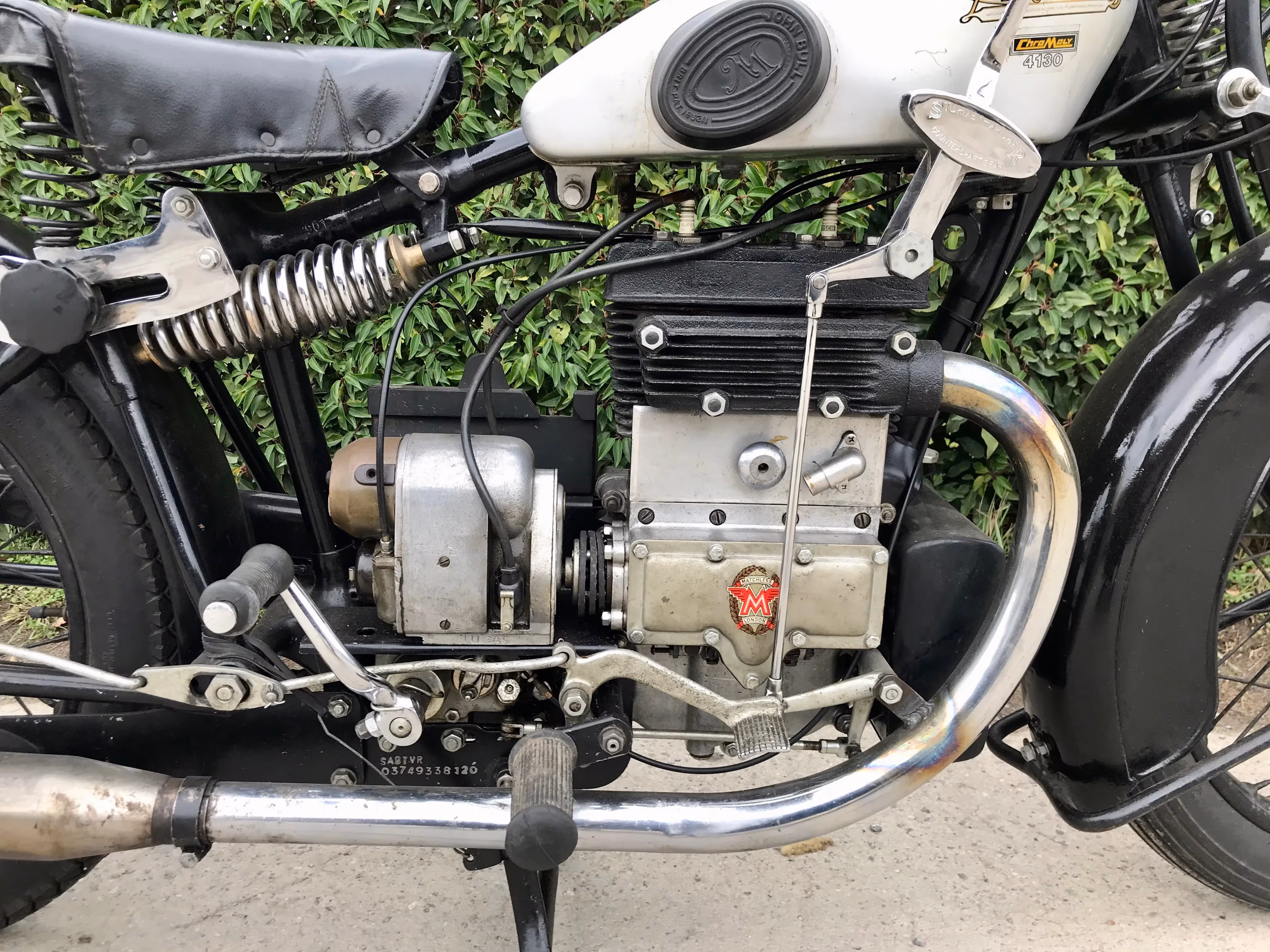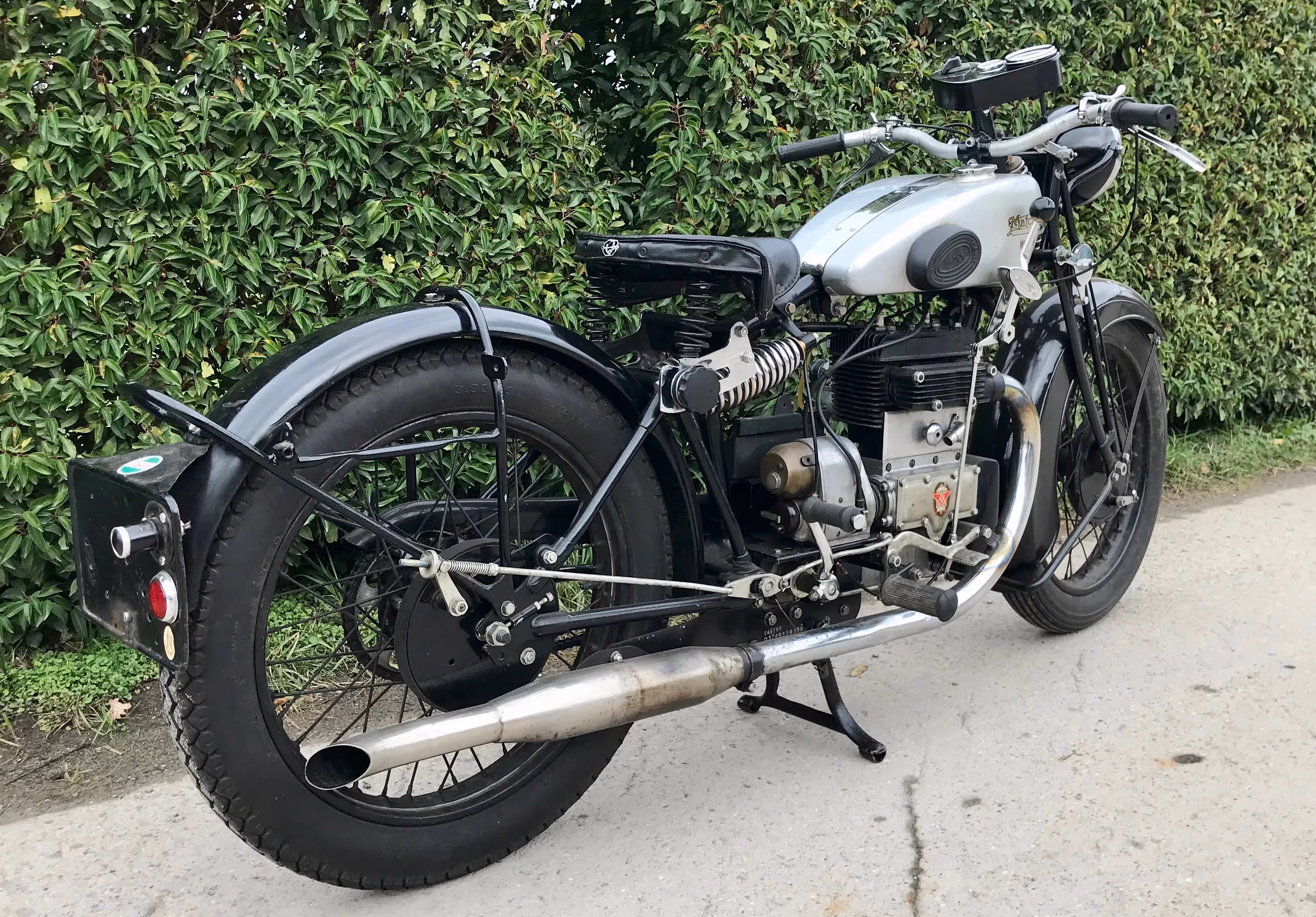 English Matchless Silver arrow. This is a 400cc side valve V-twin with rear suspension from 1930.