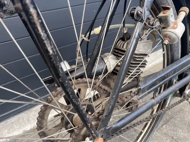 MAW (Magdeburger Armaturenwerke) 49.7cc auxiliary engine. Made between 1954 and 1959 in Magdeburg the former GDR. As happened a lot in Eastern Europe, the MAW is a copy of the German AMO auxiliary engine. Here it is built on a G.K.S. Rad.