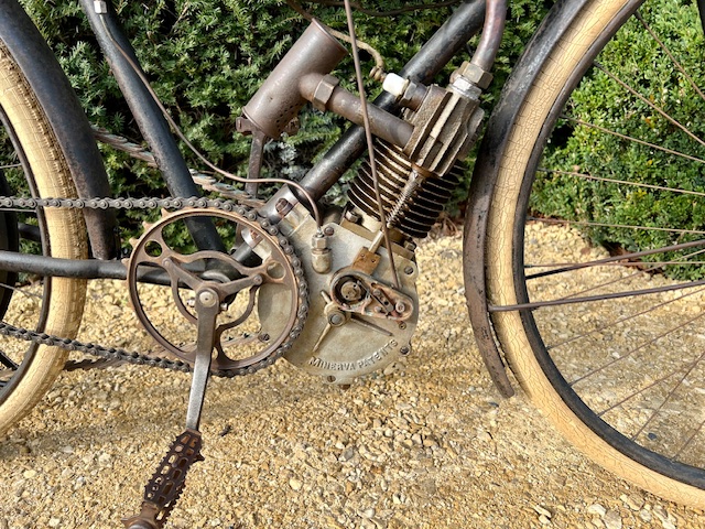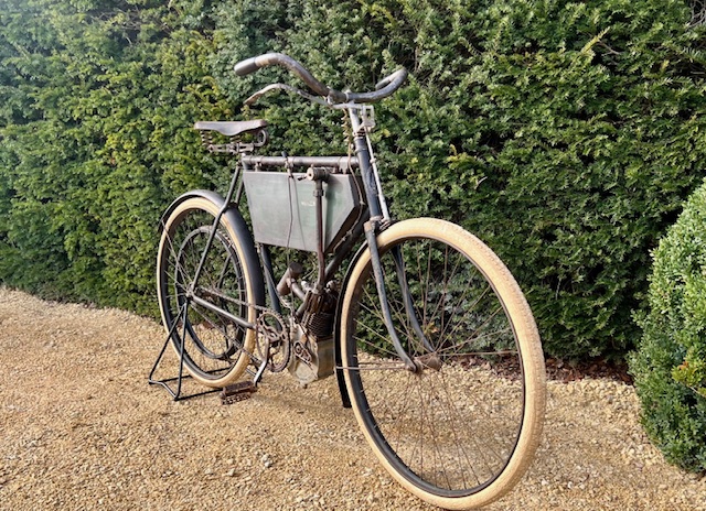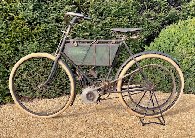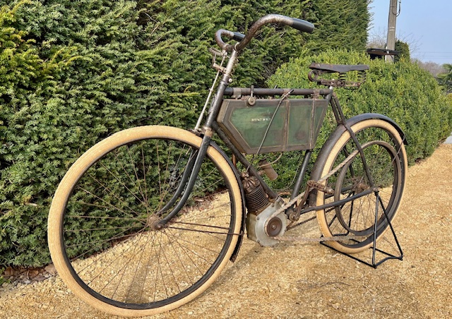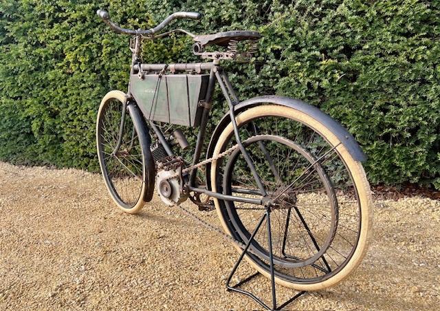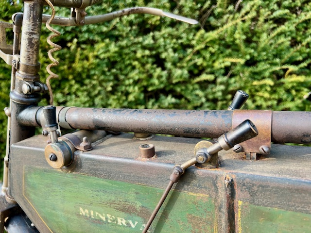 The Minerva 211cc from 1901 offered here is in original unrestored condition. The engine is detached. These early Belgian motorcycles are rarely offered for sale, and certainly not in this original condition. The motorcycle comes from a large private collection where it has been stored for many years.