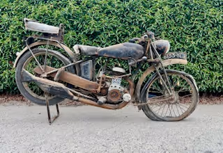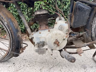 French Motobecane model B33. This is a 250cc side valve. Straight out of the barn, nice for restoration or so clean up.