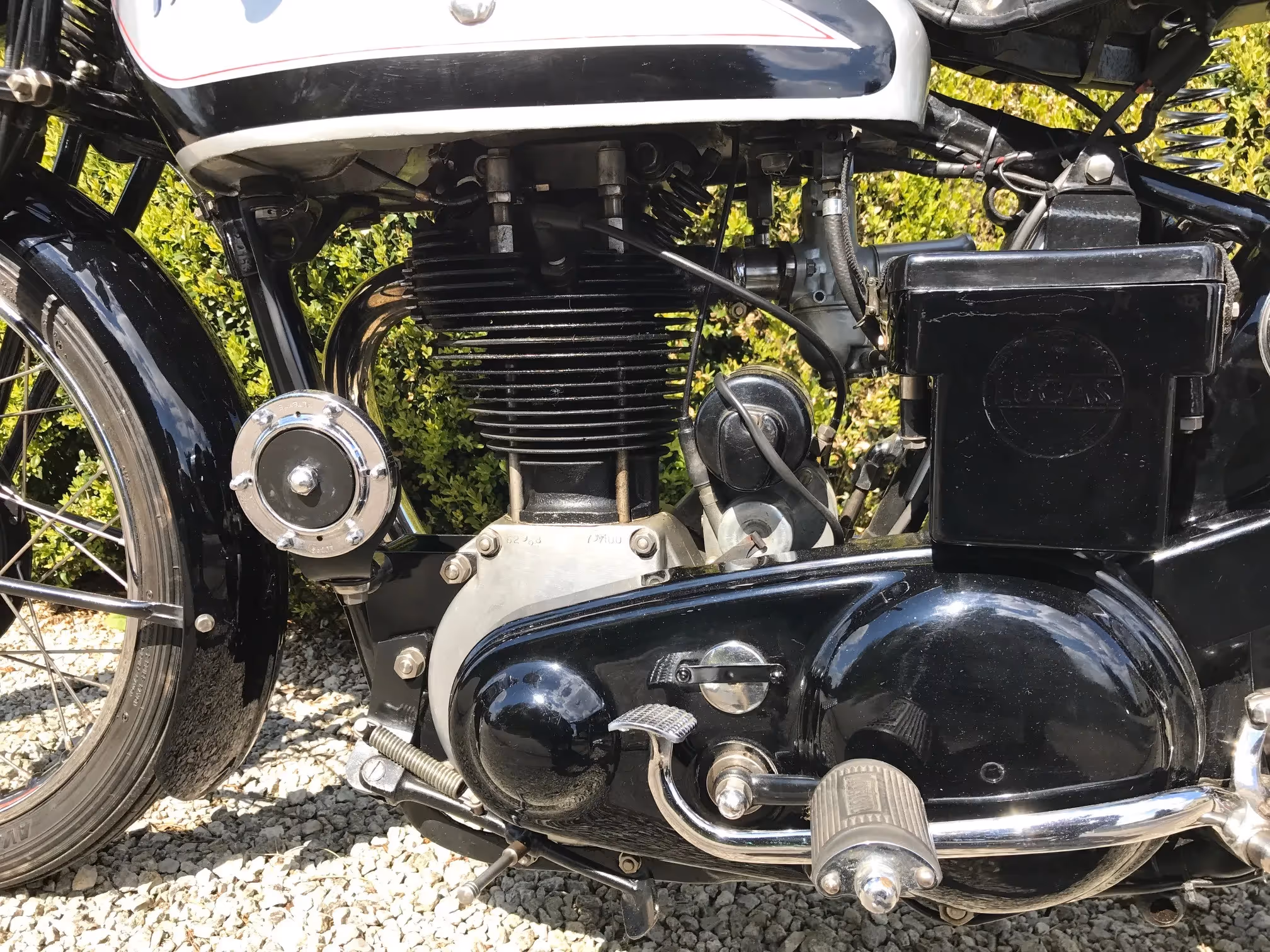 English Norton model ES2. This is a 500cc open OHV from 1935. Norton had the model 18 as standard model 500cc OHV. The ES2 was the more sporty version of this 18. This motorcycle was set up by the previous owner in race with a large carburettor, large narrow front wheel, large petrol tank, large brakes, Brookland exhaust,... A real rider's bike for both track and track use. With this motorcycle the document of "The Vintage Motorcycle Club LTD" confirmed that authenticity and year of construction.