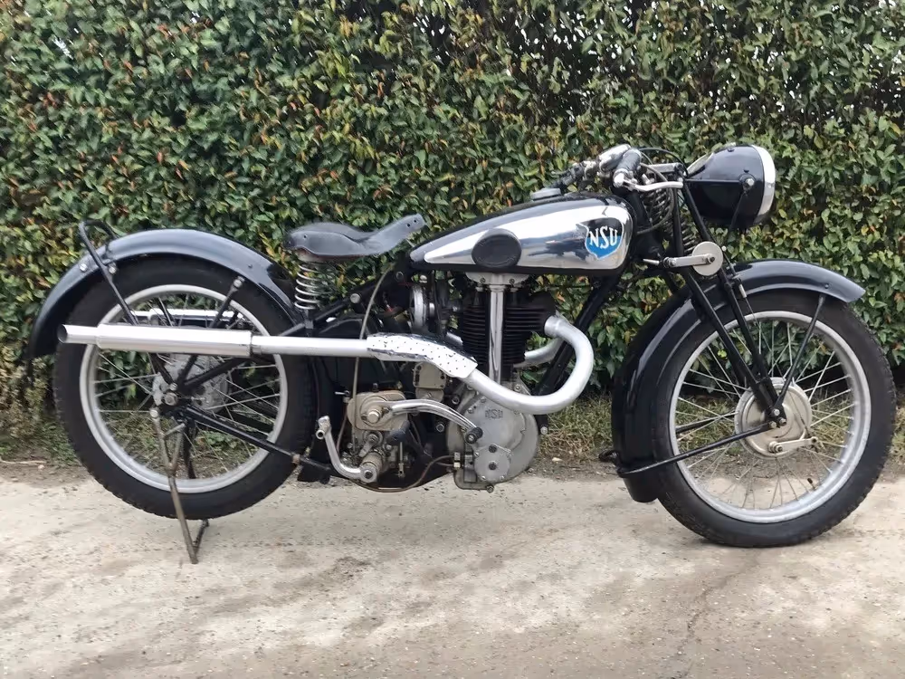 German NSU model 501 OSL. This is a 500cc OHV sports motorcycle from 1936. Old restoration that has been standing still for several years. Everything looks good but needs to be restarted.
