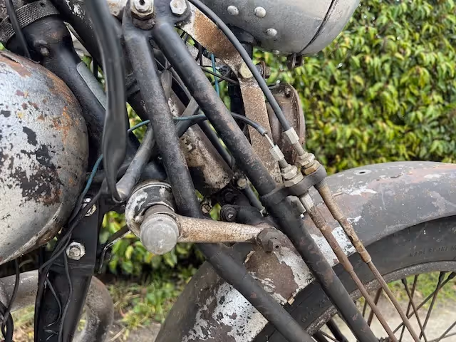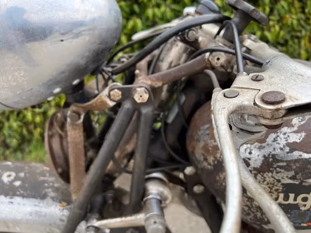 This model was the top model of the types you could buy. Fenders partially chrome plated, large sport brakes with cooling fins, Amal sport steering wheel, dual brake system,....