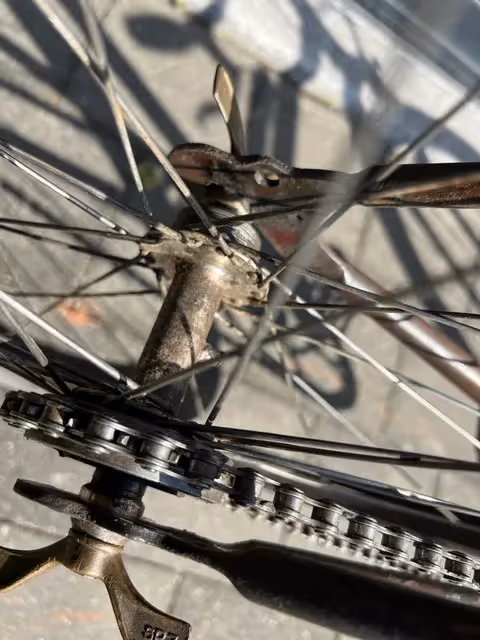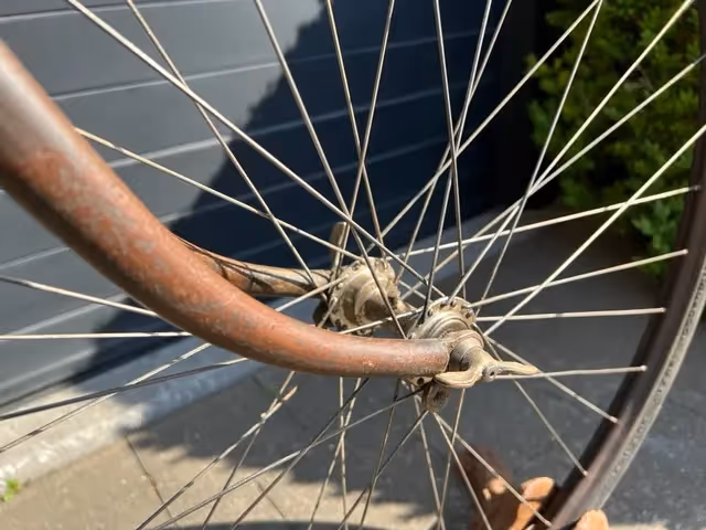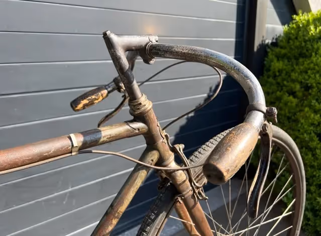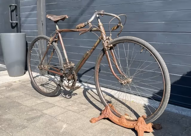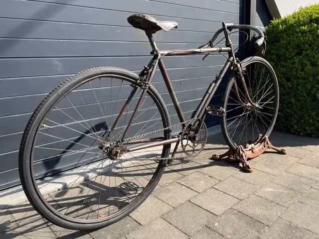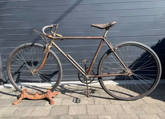 Beautiful French Peugeot racing bike from 1914-15 approx. Still in original paint. With rear wheel with 2 cogs (1 missing) for the 2 gears.
