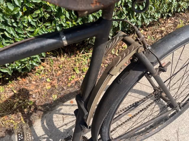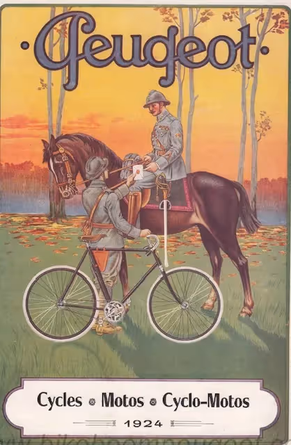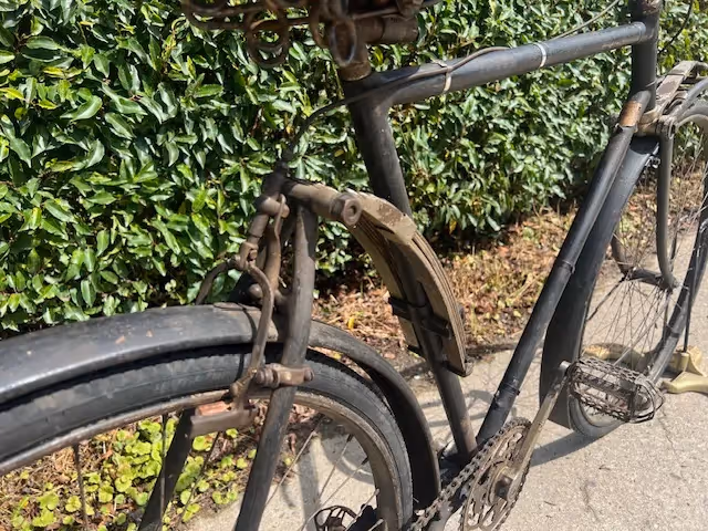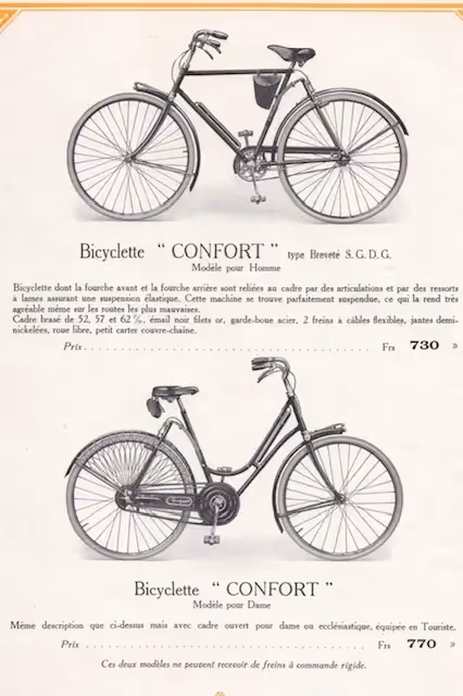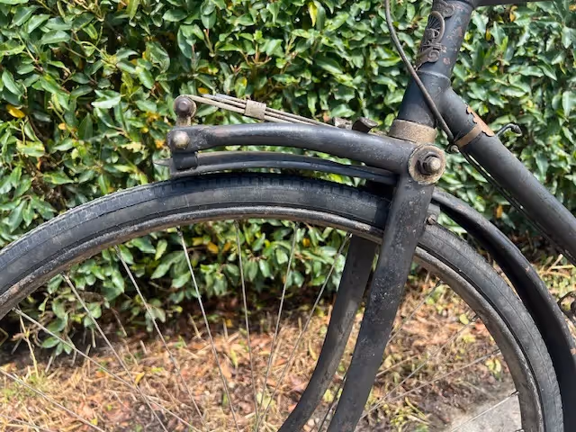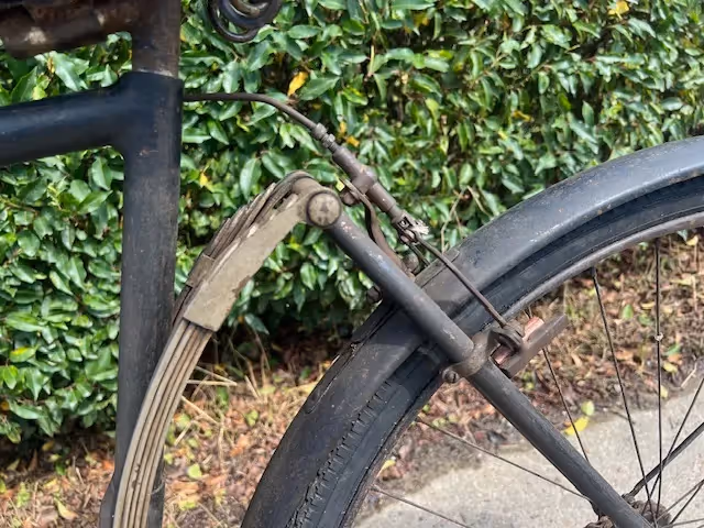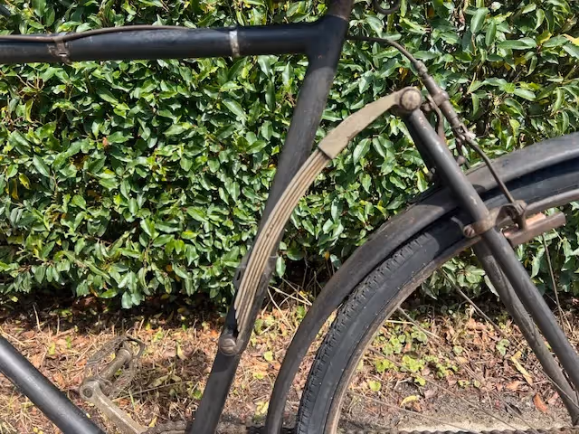 Rare French Peugeot bicycle with front and rear leaf springs. This model was only made in 1924. According to some Peugeot specialists only about 10 of these bikes were made. Because of the front suspension it was too difficult to fit a front brake so this bike has 2 rear brakes.