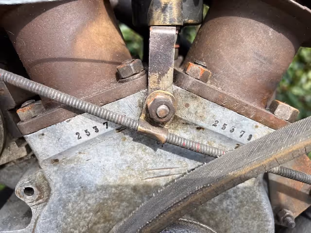 This bike is a nice original bike that has not been trashed or restored, right out of the barn. Very nice base for a technical restoration. Engine is loose and still has good compression.