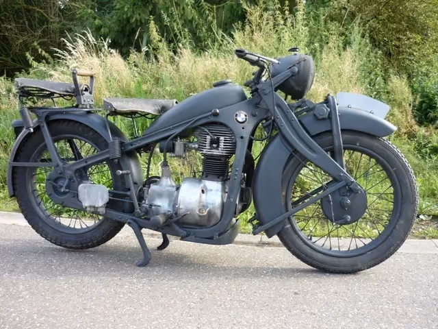 This BMW model R4 series 4 of 1935 is a 400cc OHV 1 cyclinder with pressed frame shaft drive and front fork with leaf springs. This model was before and during the war the training model for all kradmelders of the German army. Because of its reliability, this model also proved its services at the front. This is a nice retauratie with still original saddle covers.