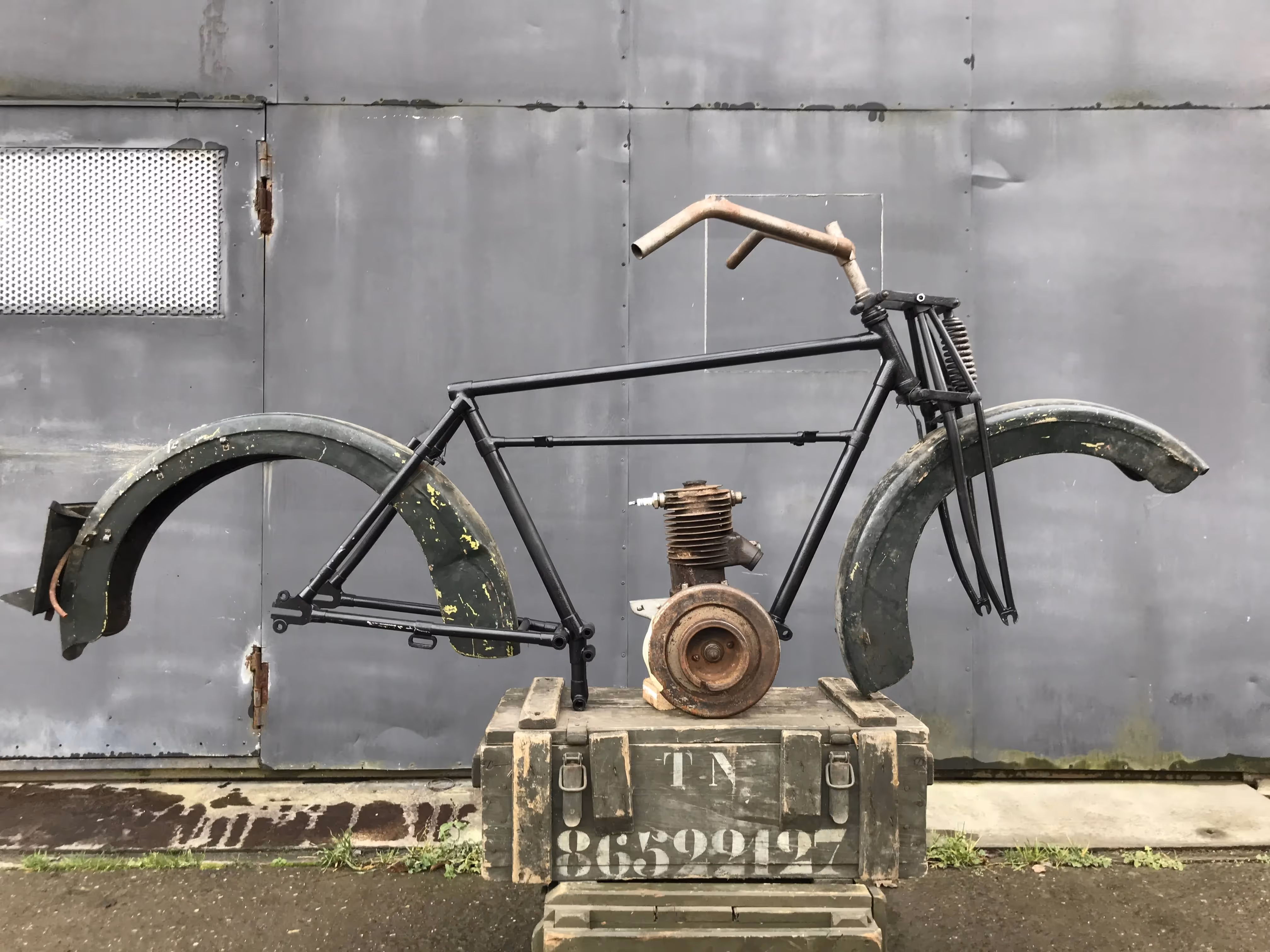 English Royal Enfield model RE 201. This is a 225cc 2 stroke of about 1921. This one still has the early big handlebars.