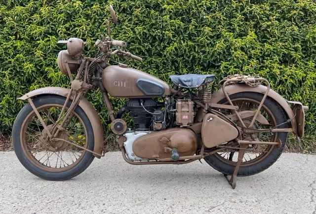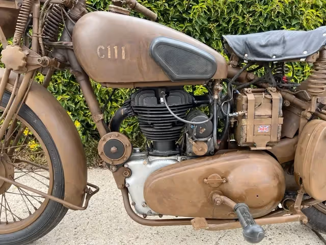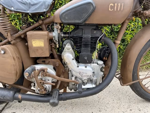 English Royal Enfield model WD/CO of 1944. This is a 350cc OHV delivered to R.A.F. in 1944 according to the army contract 14219.
