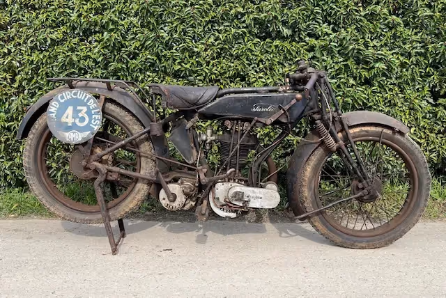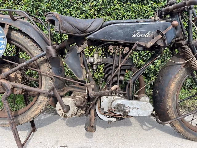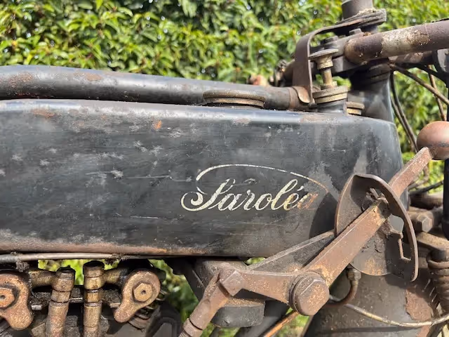 Belgian Saroléa model 25L. This is a 350cc OHV super sport of 1927. This motorcycle was found years ago by a French museum owner in a barn. This man liked it so much in patina that he did not clean it and put it away like this in the museum. Now 20 years later it comes out of this museum, still dirty and original but with a beautiful patina.