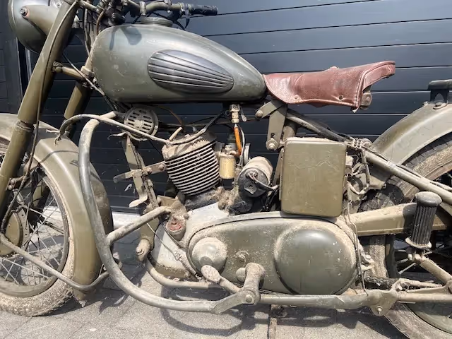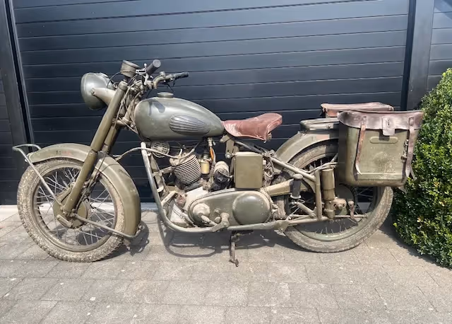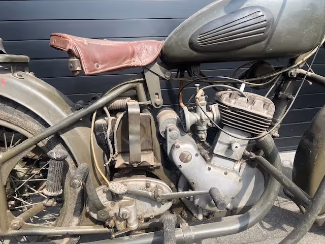 Beautiful original army Saroléa from the Belgian army. Sold in 1977 and never done anything with it since. Engine is loose but everything could use a good overhaul before starting it. With certificate from the army to register it.