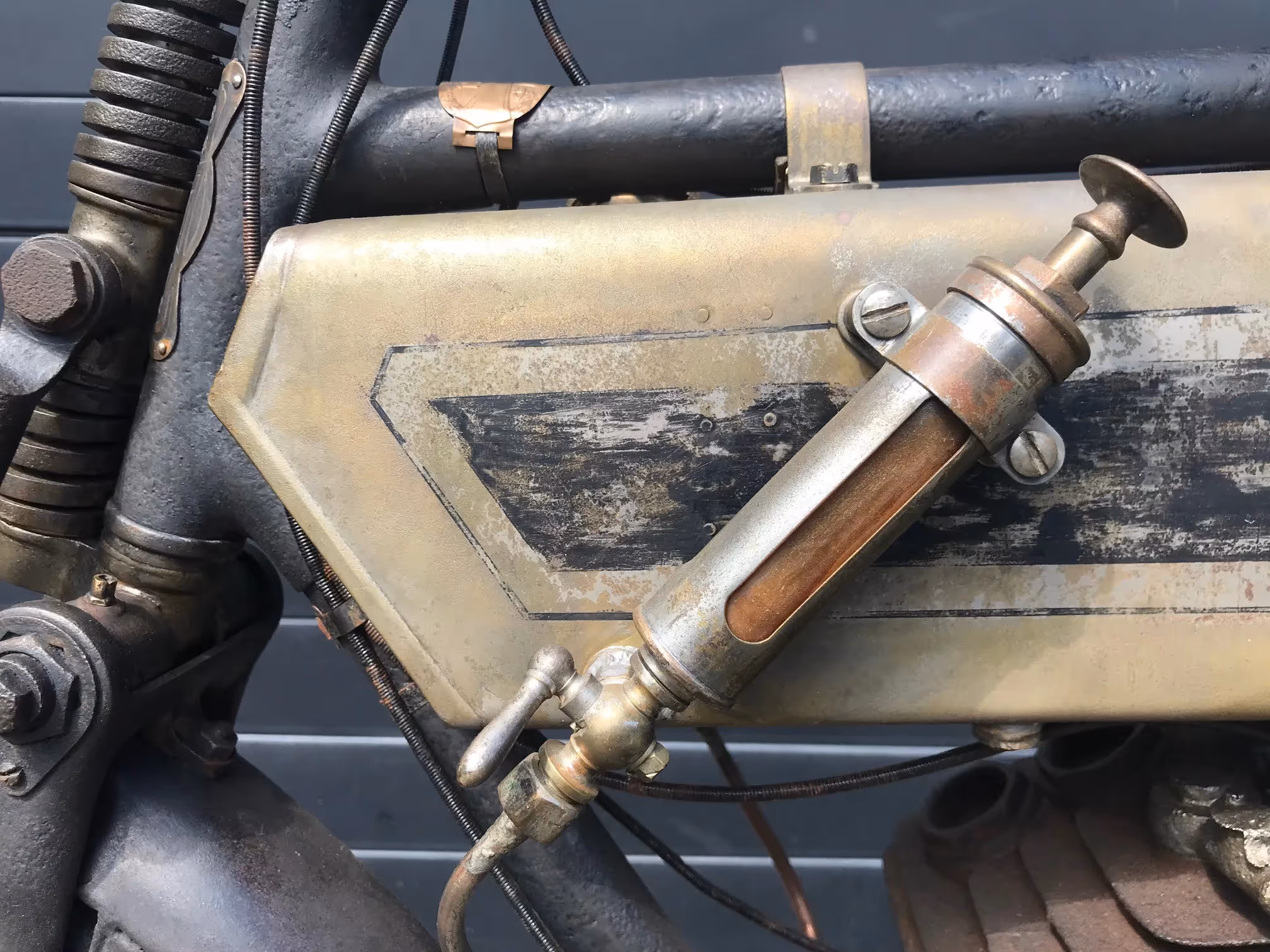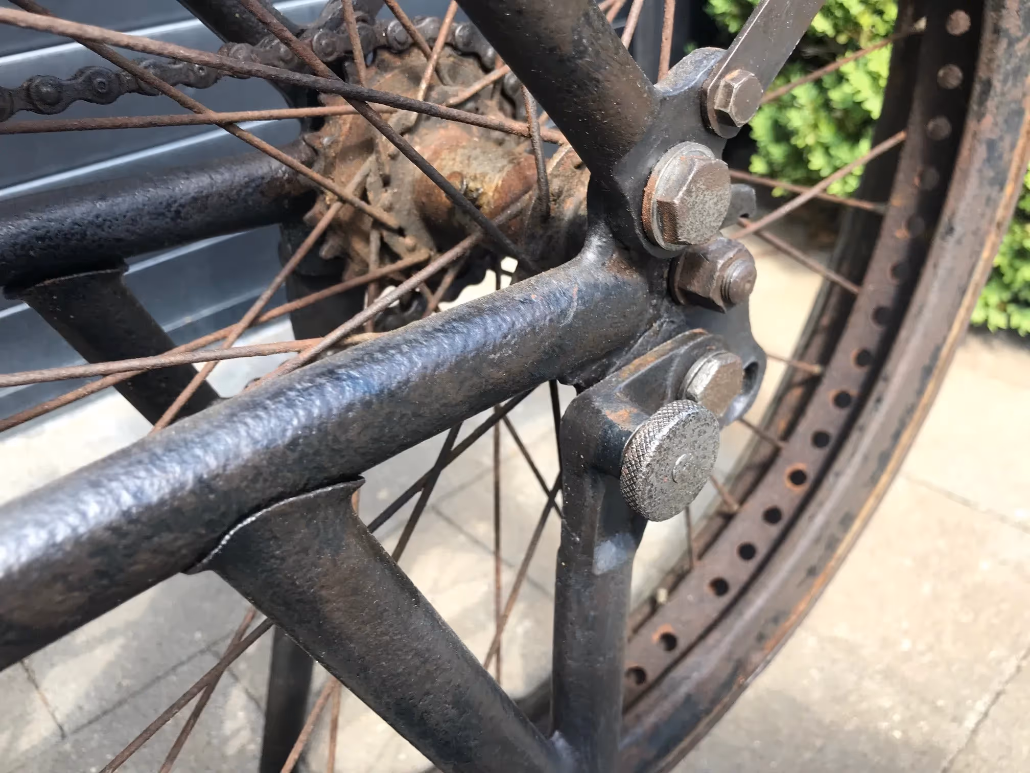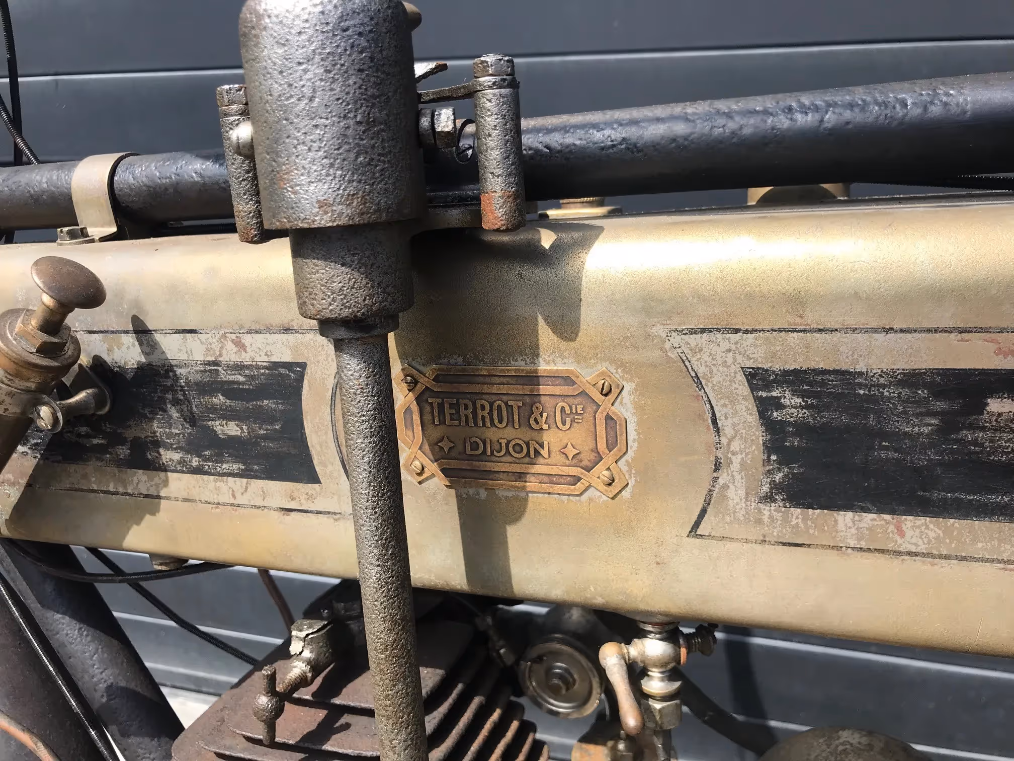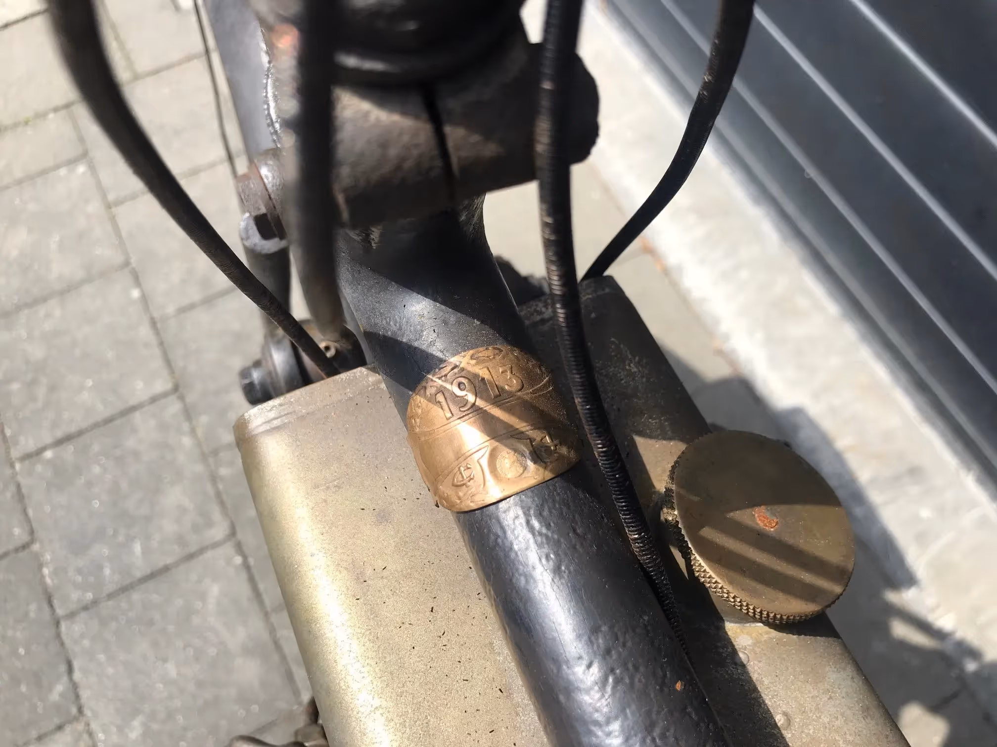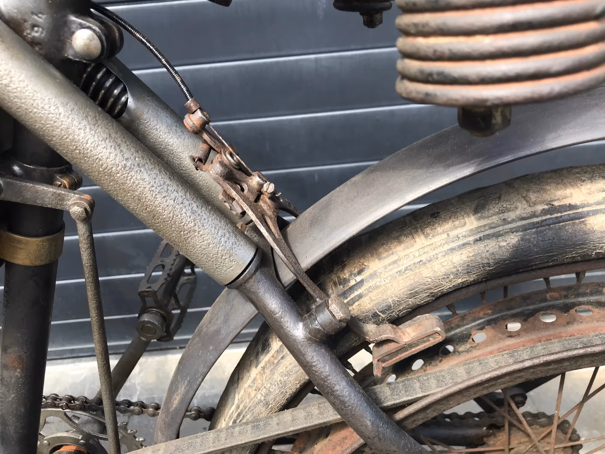 French Terrot Motorette N°3. This is a 317cc side valve from 1913 with many options. This motorcycle is the successor of N°2 which was a 264cc IOE with sniff valve. This motorcycle has several options like the new rear suspension frame (Nouvelle suspension élastique), cap over magneto and the gears via a kind of vario-matique (Changement de vitesse progresssif). This is a rare version which is very easy to ride during rides because of all these rare options. Motorcycle is in original very nice unrestored condition and needs little work to get it running again.