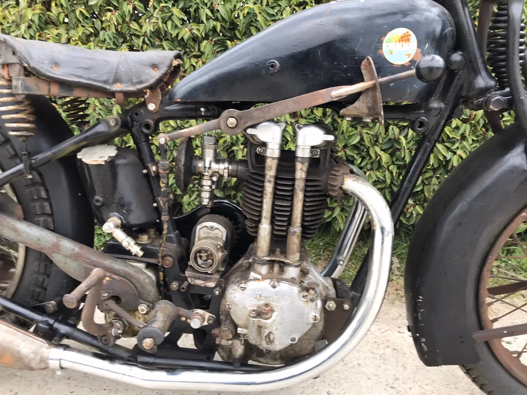 In the twenties Triumph already had a 500cc OHV (4 valve) called model Ricardo. At the end of the twenties a 2 valve was made because of a weak cylinder head. This was the Triumph TT. By the great success of this sporty bike was started in 1929 with a 350cc OHV. The first 350cc OHV ever made by Triumph came out in 1929, the year of the stock market crash in America. In 1929 there were some sold but the following years by the crisis, the sales were disappointing. In 1932, after 3 years, the production of this model stopped. Therefore this is a motorcycle that is rarely for sale.