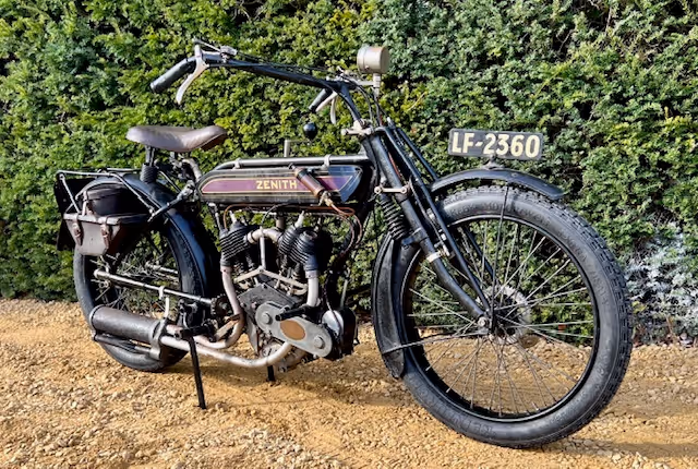 The Zenith offered here is the large version with a JAP V-twin engine with 770cc. This motorcycle is an older restoration with signs of use and which we have now given a full technical restoration. Starts and runs well. Also has a Pioneer Certificate.