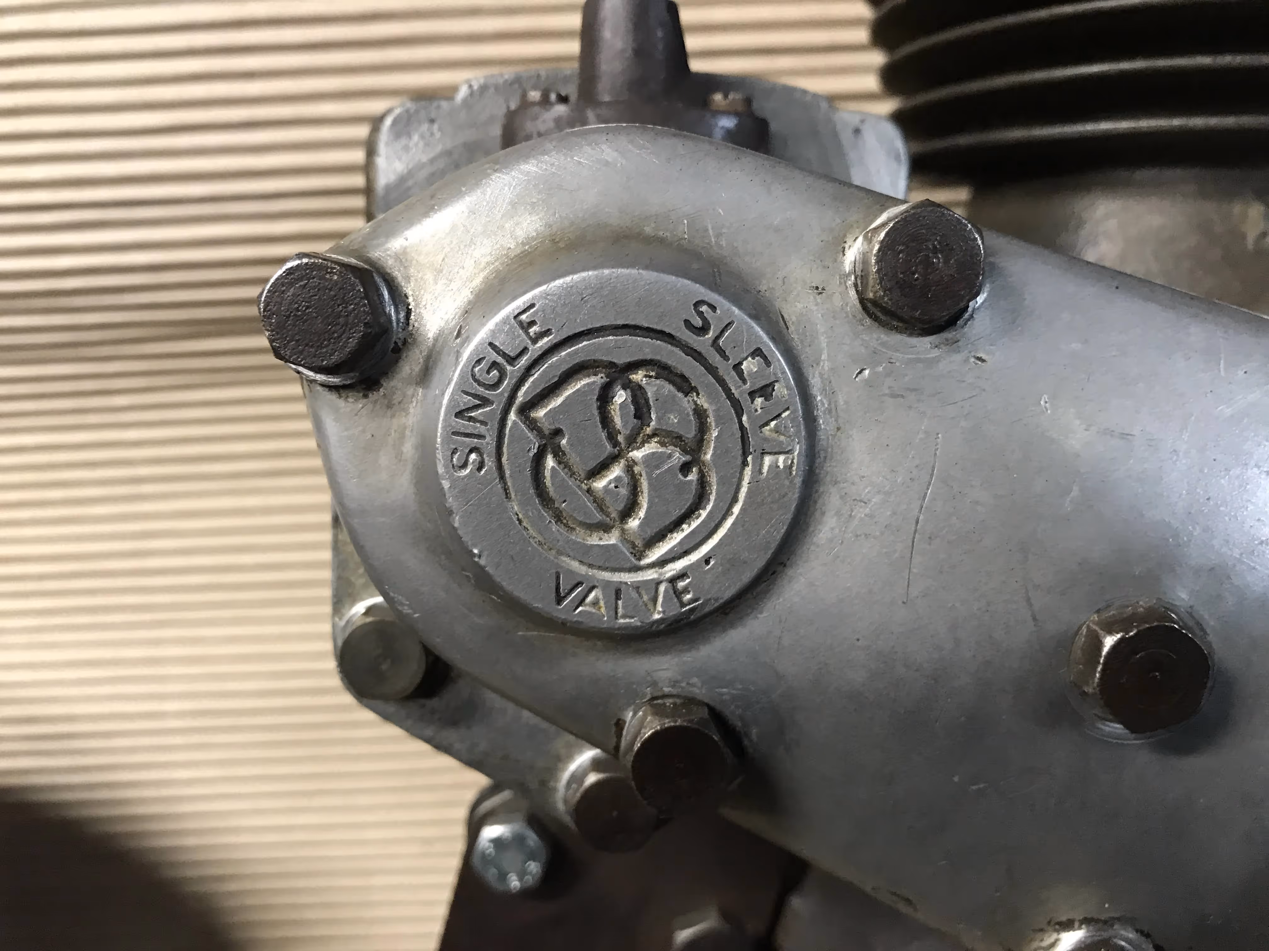English Barr & Stroud sliding engine 350cc from 1922. This is a 350cc 4 stroke engine without valves but with an internal moving jacket that releases the intake and exhaust opening in due time. These engines were known to be fast and quiet. Rare engine that has been built in several brands. There are 90 delivered to Germany to build in a German engine of the brand Racer.