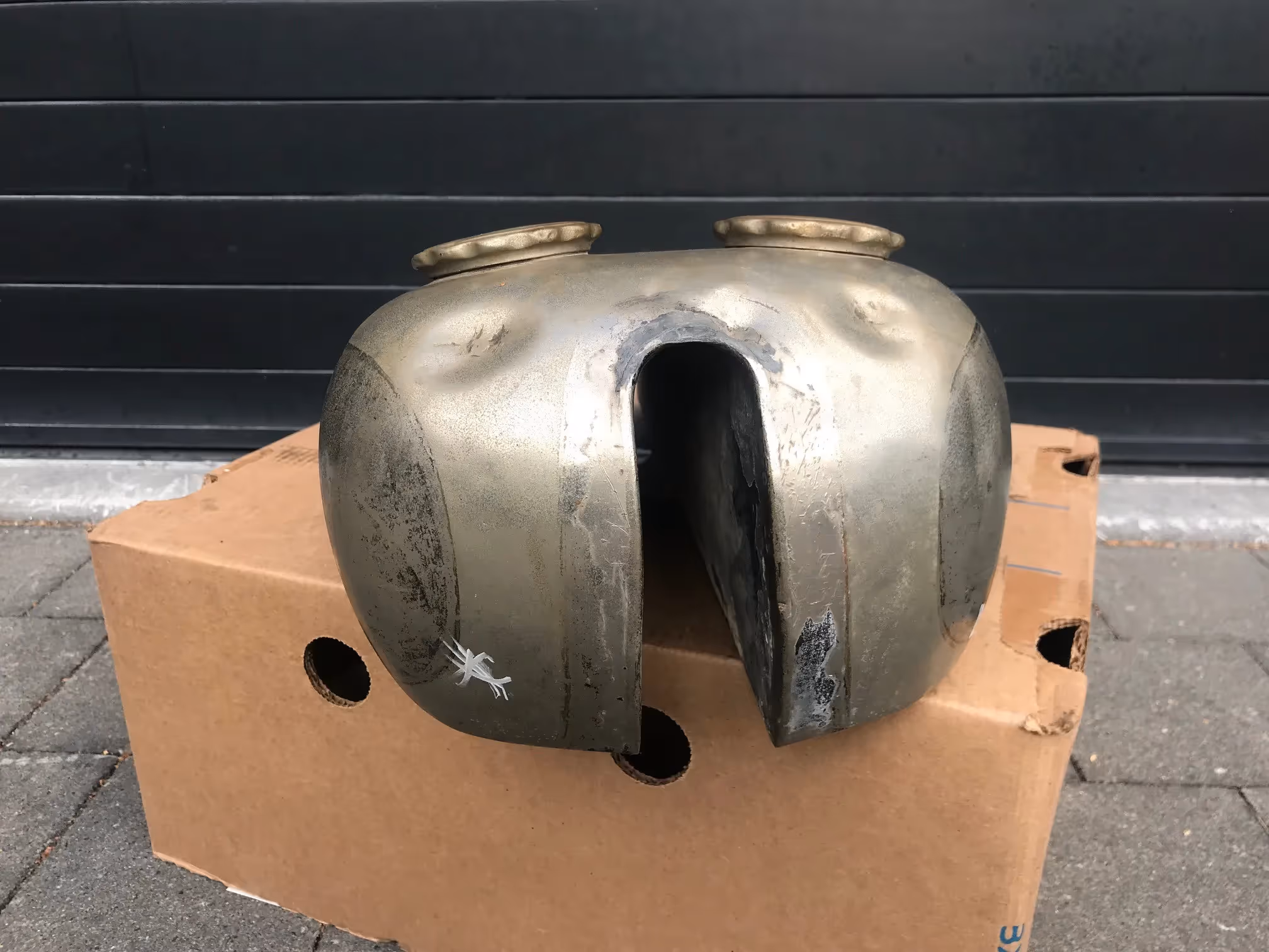 Nice old gas tank with FN painting. Model???? unprecedented model with 2 fuel caps?