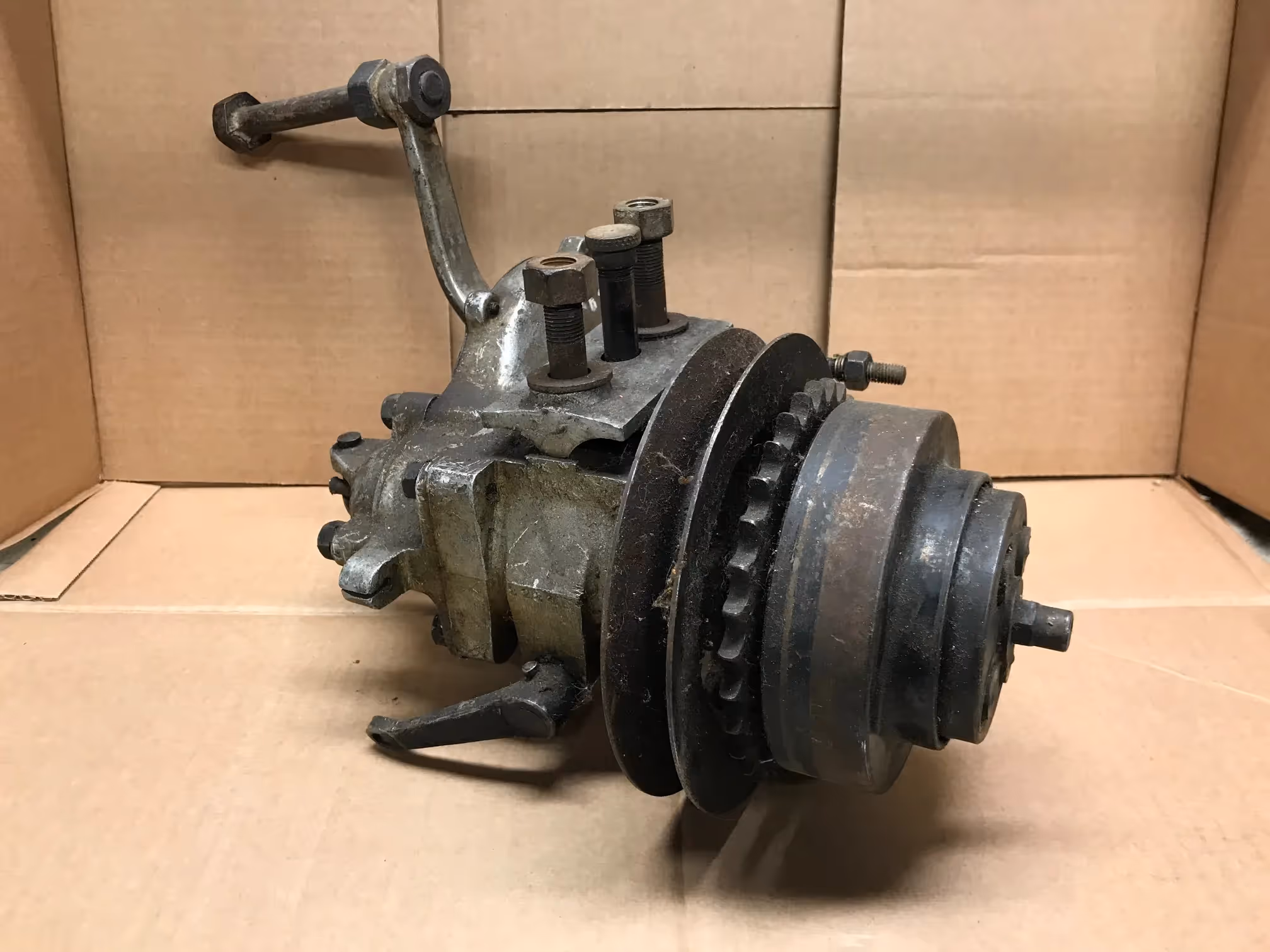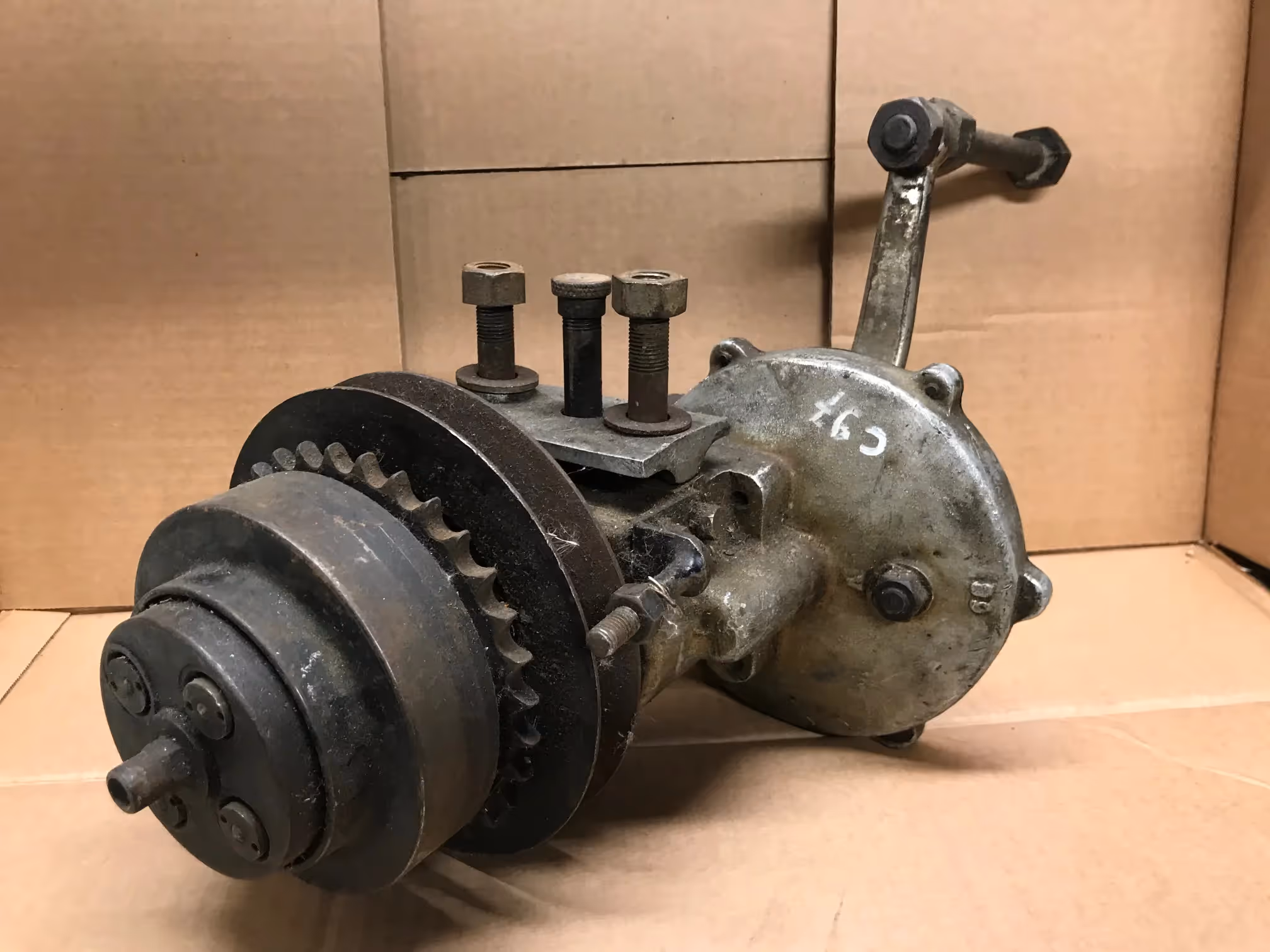 English gearbox with kickstarter and clutch. For motorcycle with belt drive of the twenties.
