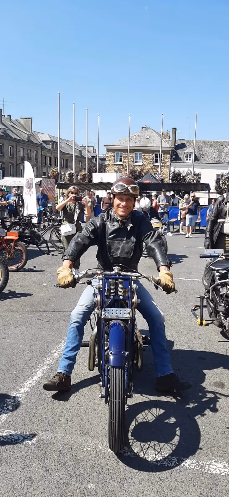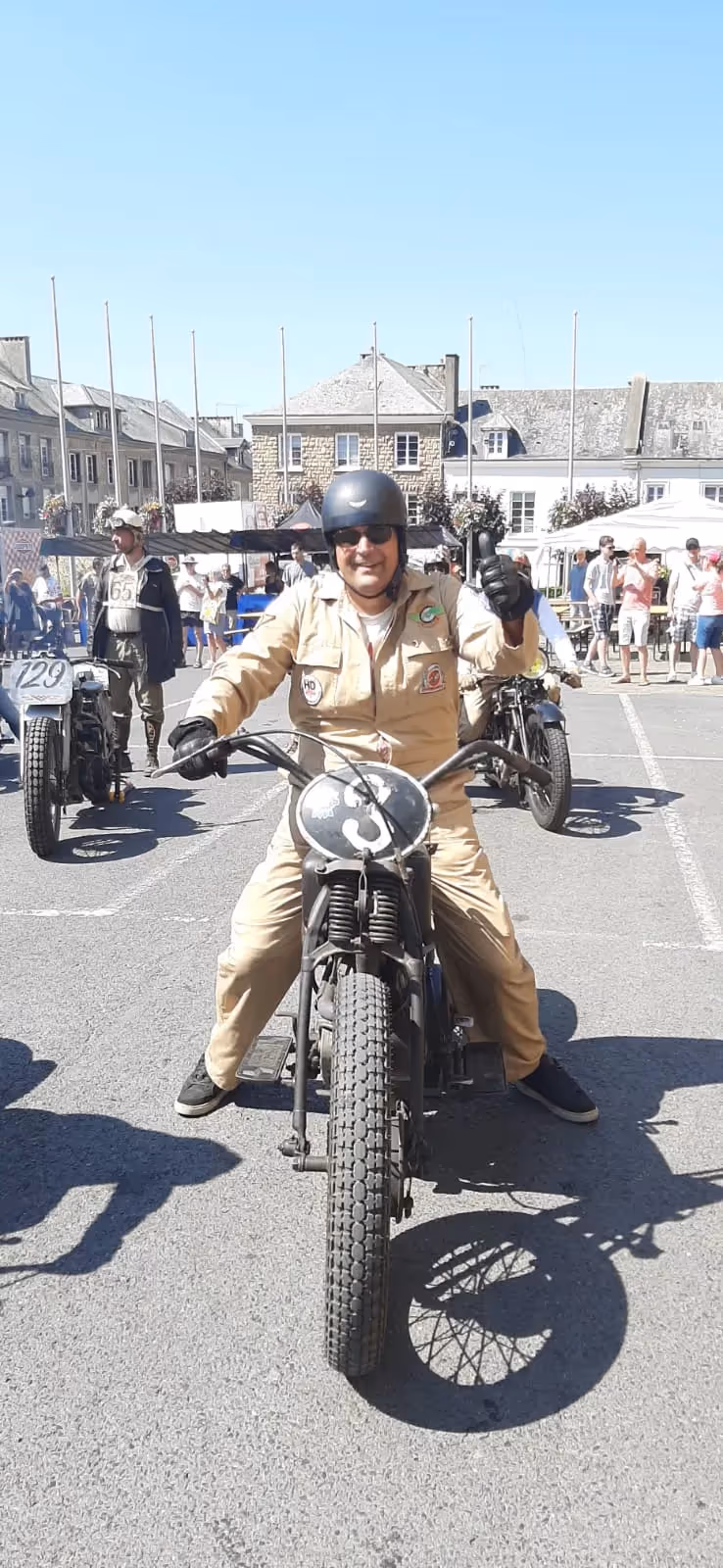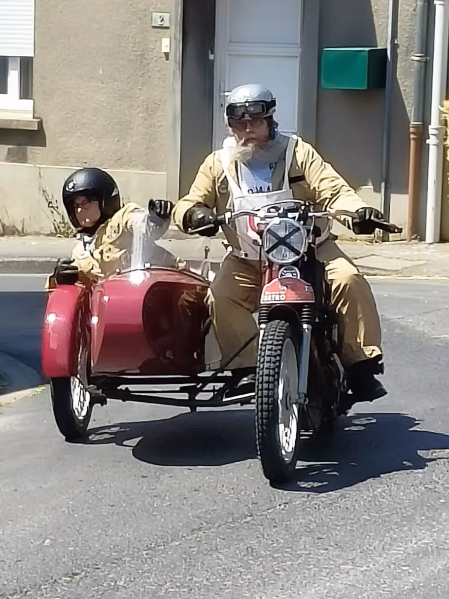 Racing old motorcycles in northern France in a village completely sealed off with bales of straw.