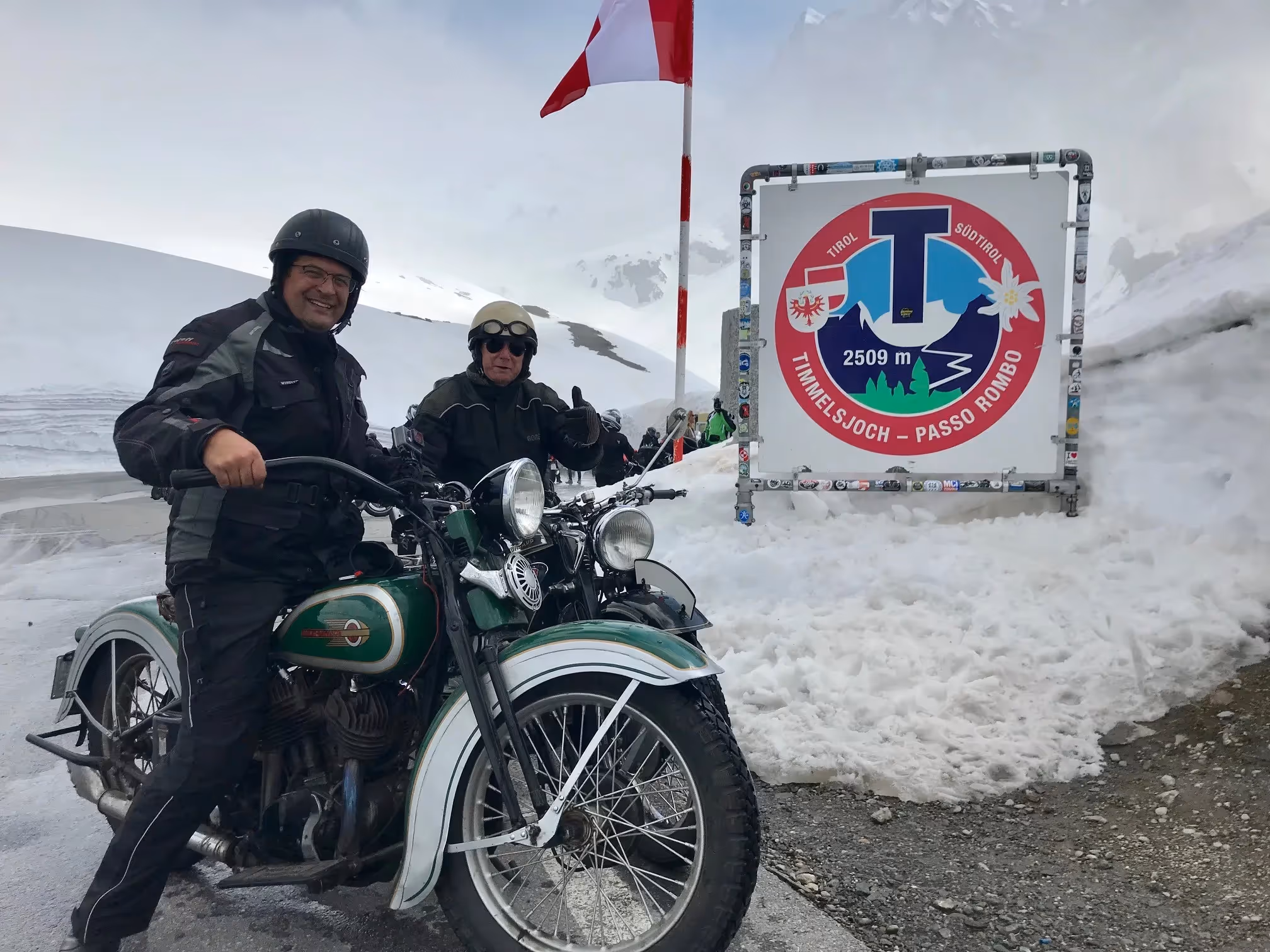 These are 3 reasons to pass here. In Hochgurgl (Sölden a little further on) you can take the Timmeljoch alp pass to Italy. At the tollbooth is the highest motorcycle museum in the world at an altitude of 2175m. This museum is 3000m large and there are more than 300 motorcycles on display. And they are going to expand. Attached to the museum is a very good restaurant where you can also go in the winter from the ski slopes. In this building is also the ski lift. From here you can take the pass to Italy and drive along hairpin bends and breathtaking mansions to the top at an altitude of 3000m. When I'm around I always take a few motorcycles to ride here, unbelievably beautiful and ideal test terrain for the bike. Every year the museum organizes the "Hand Shifter run" a climb on the Timmelsjoch with hand switched motorcycles. Very nice event not to be missed where I like to visit every year. Several riders have already come to this event with "Time Bandits racing team".